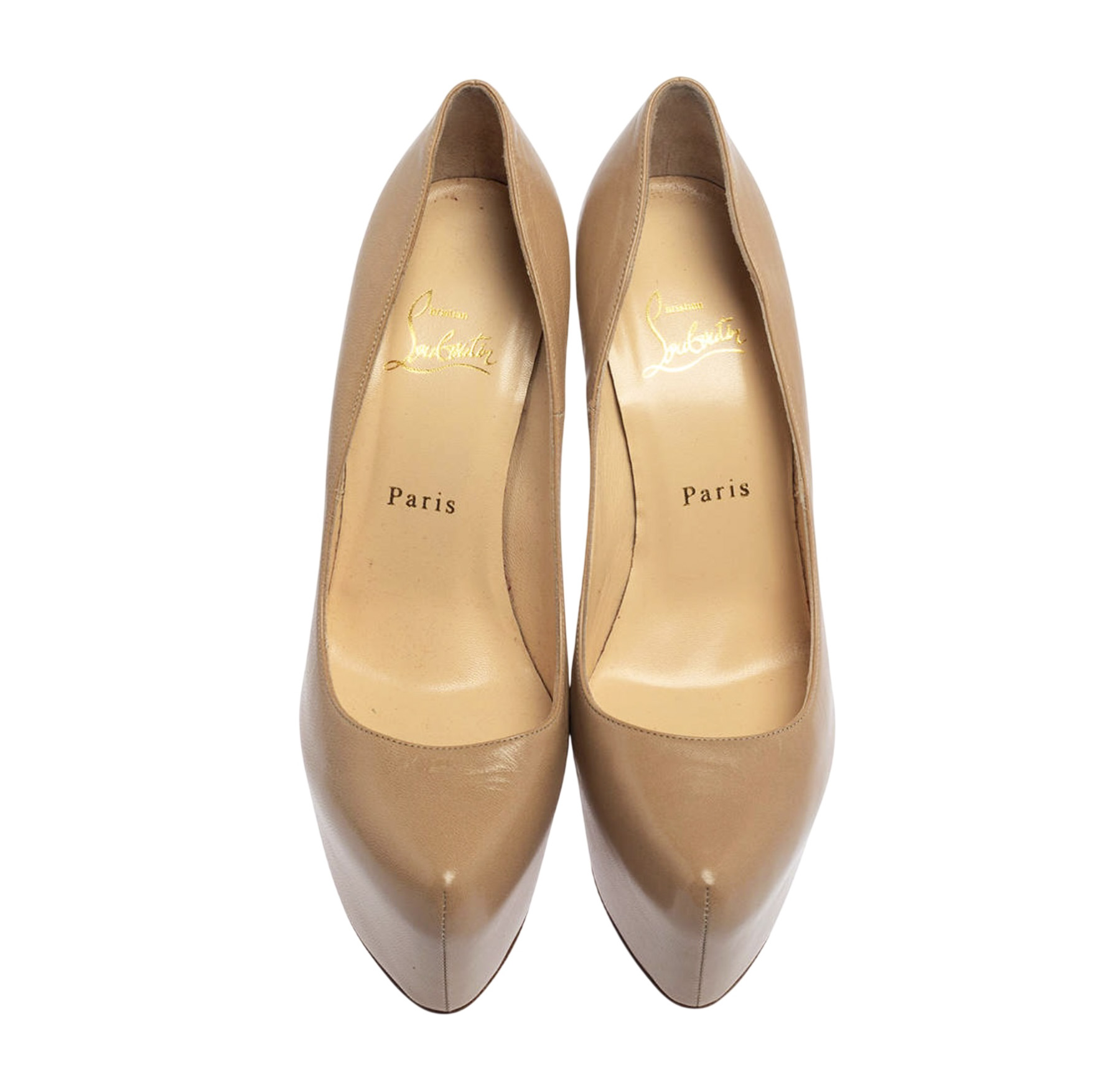 - Style: Daffodile 160 Beige Leather Platform Heels Pumps