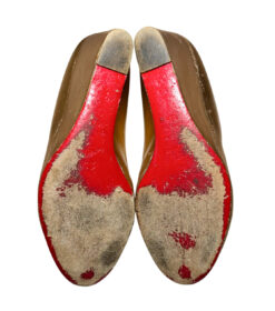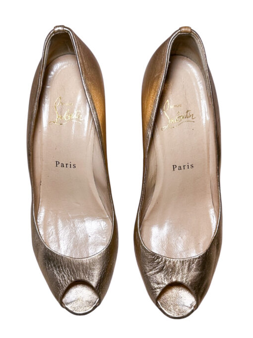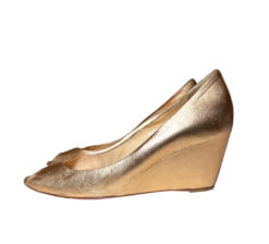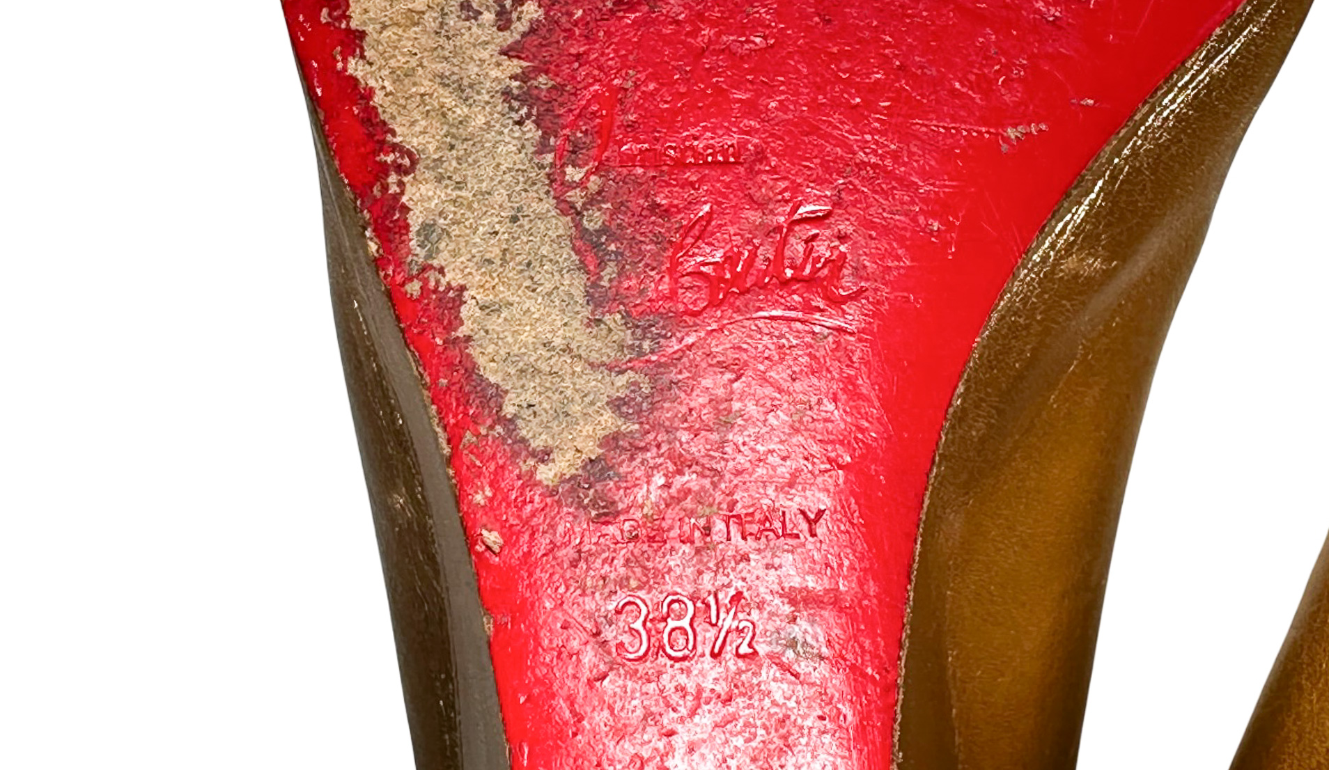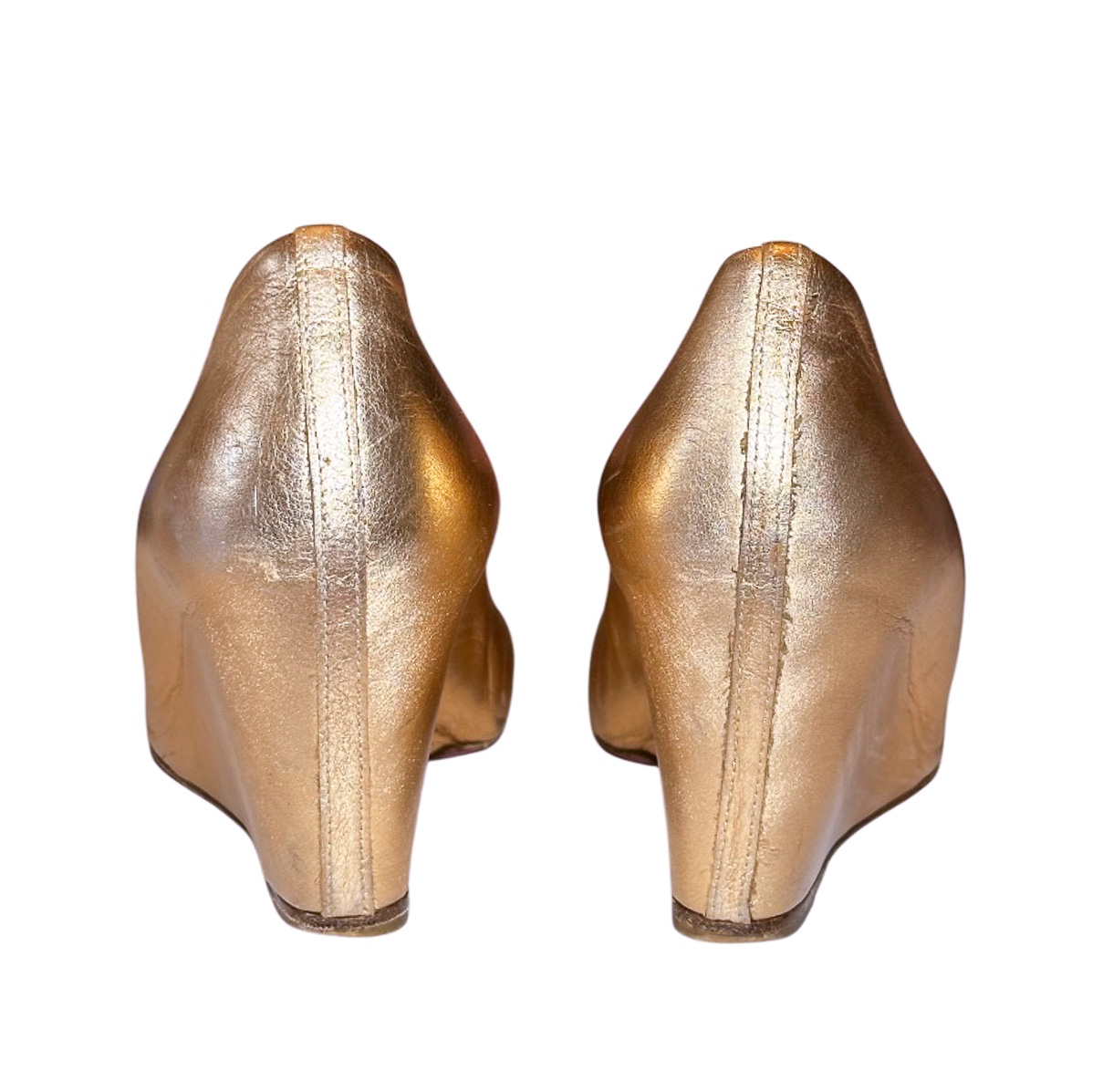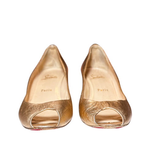 Christian Louboutin Materna Rose Gold Leather Peep Toe Wedge Heels Pumps 38.5