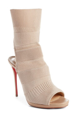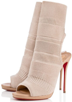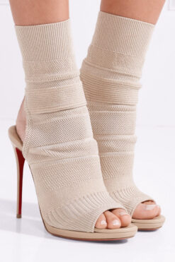 - Style: CHEMINENE 120 BEIGE STRETCH KNIT OPEN TOE SOCK BOOTS