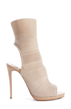 - Style: CHEMINENE 120 BEIGE STRETCH KNIT OPEN TOE SOCK BOOTS