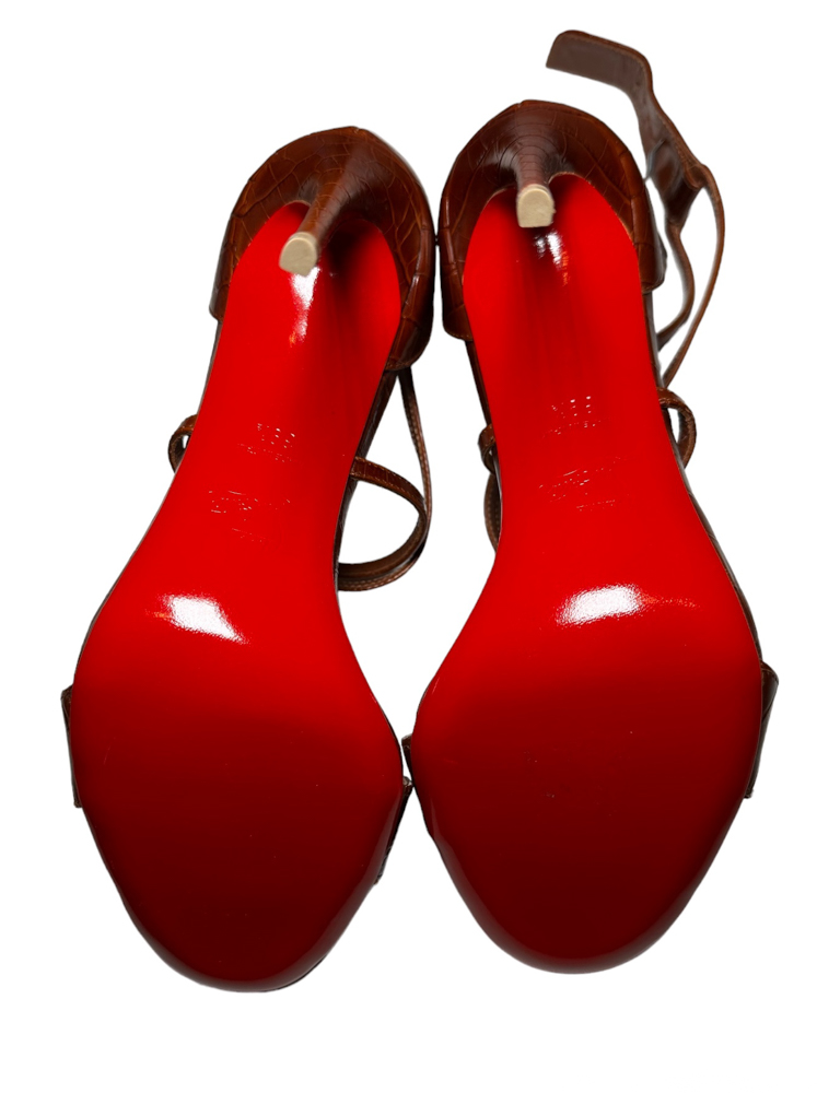 Christian Louboutin NIB Discolilou 140 Coral Red Leather Platform Heels Sandals 39.5