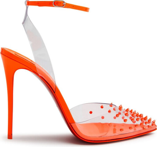- Style: Spikoo 100 Spikes Heels Ankle Strap PVC Pumps