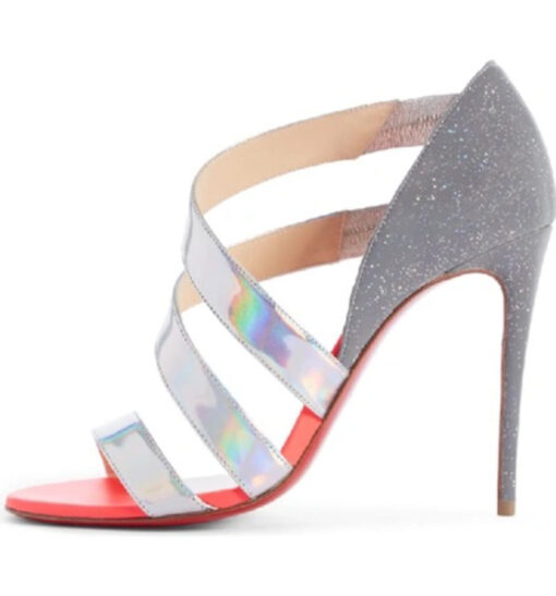 Christian Louboutin NIB World Copine Silver Metallic Strappy Heels Sandals 39.5