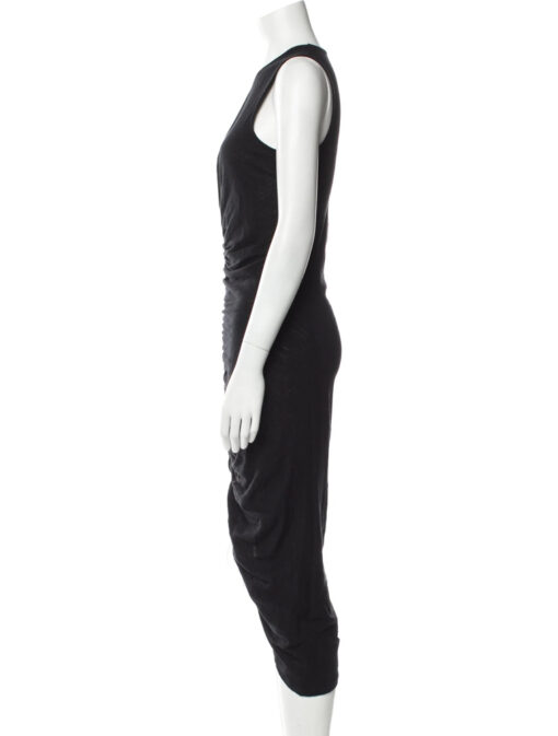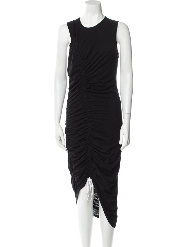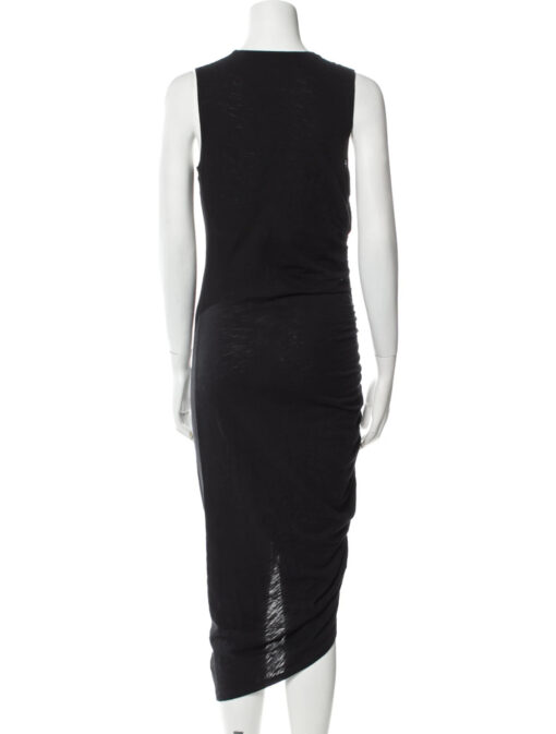 - Style: Cora Black Asymmetrical Sleeveless Ruched Midi Dress