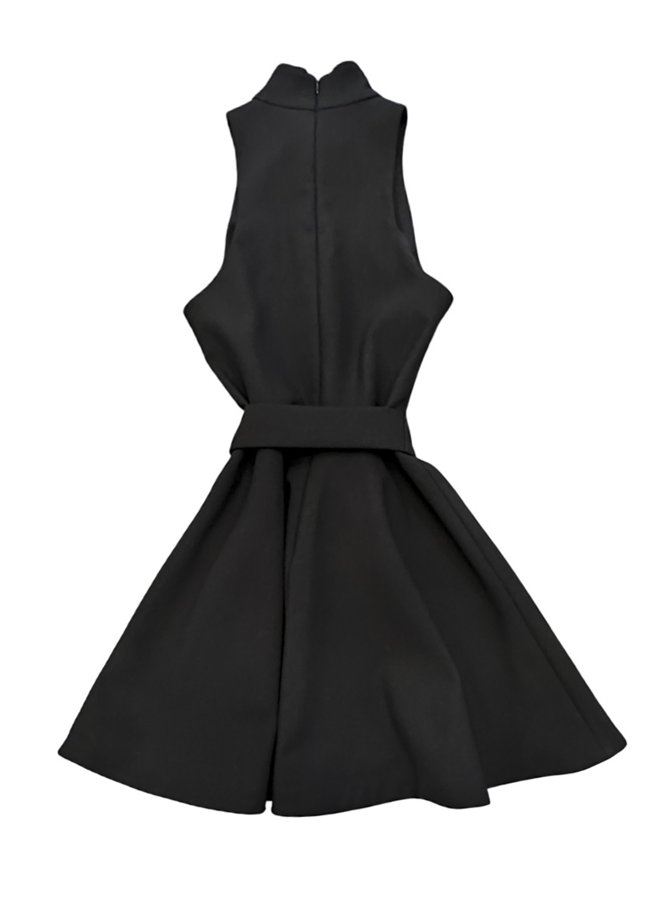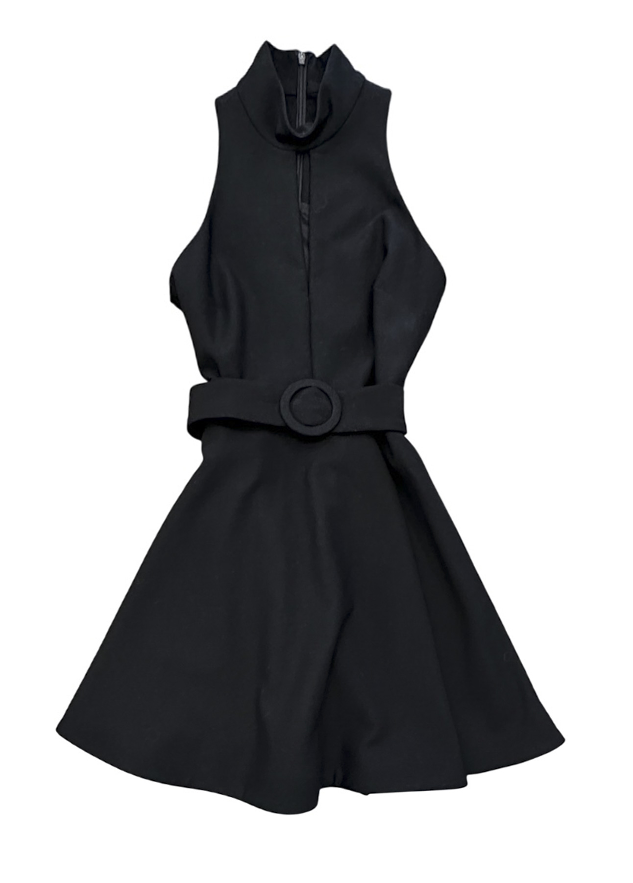 - Style: Juni Black Mock Neck Belted Mini Dress