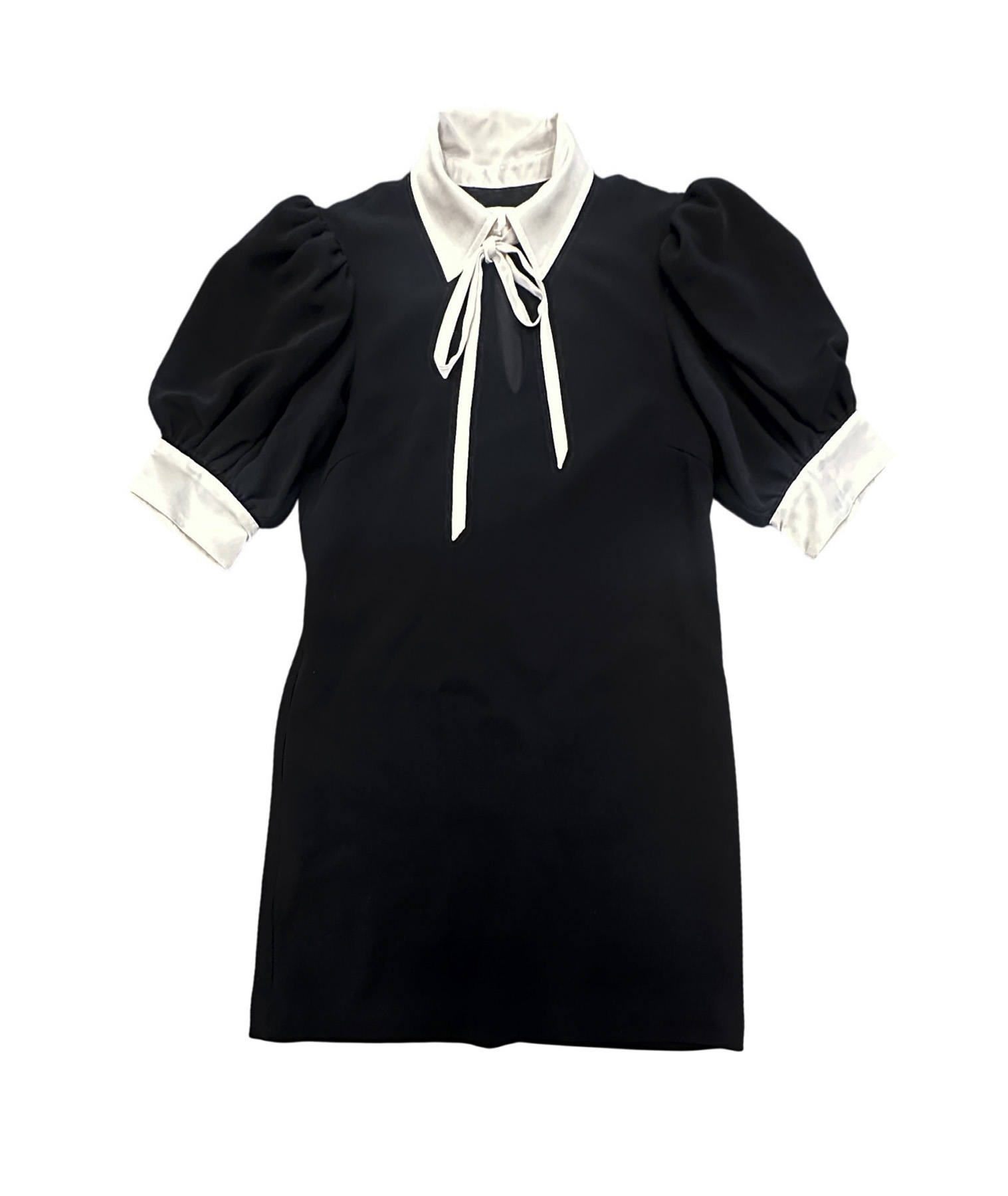 - Style: Sabelle Black Tie Neck Short Sleeve Mini Dress