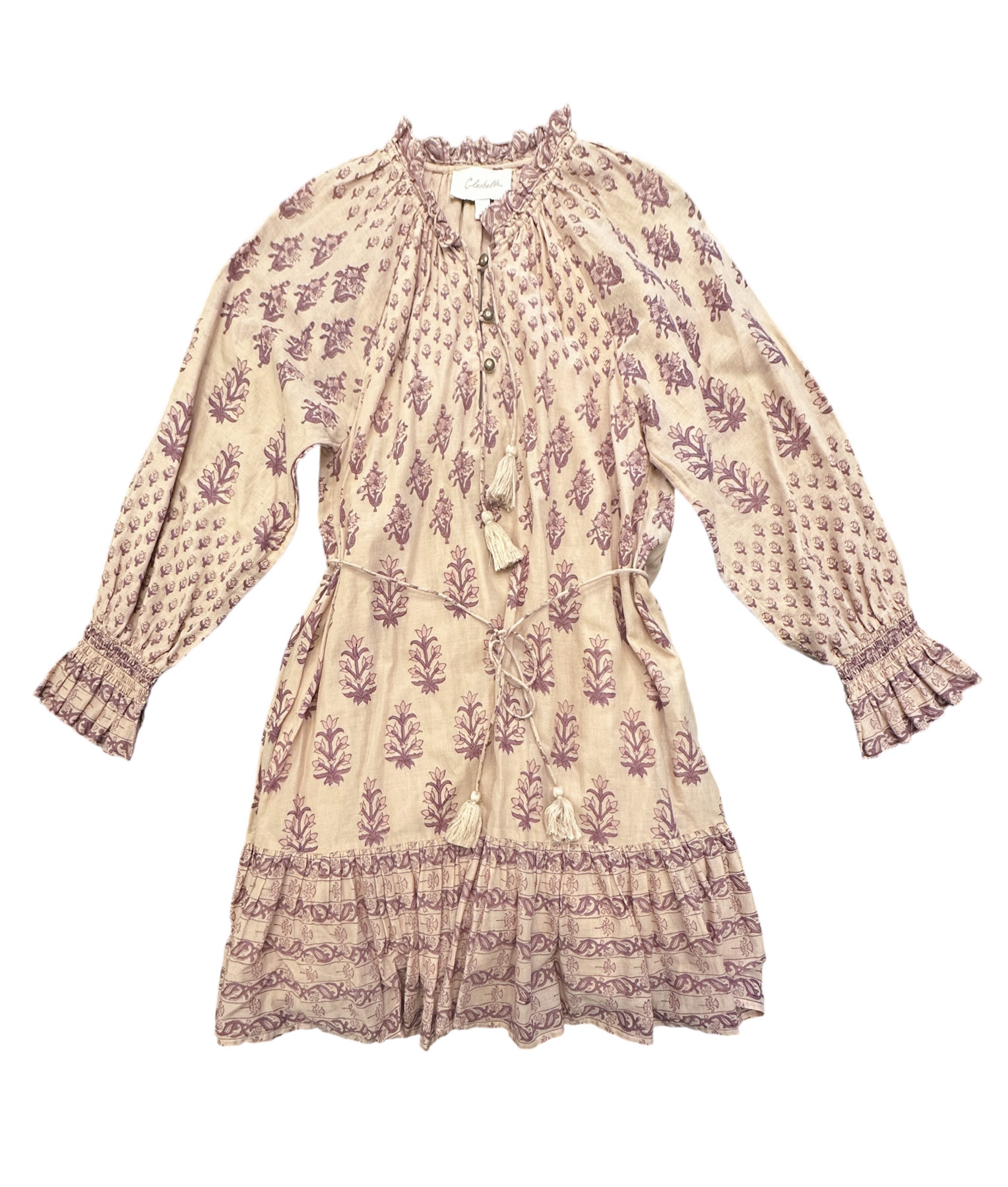 - Style: Reese Pink Floral Long Sleeve Tiered Boho Mini Dress