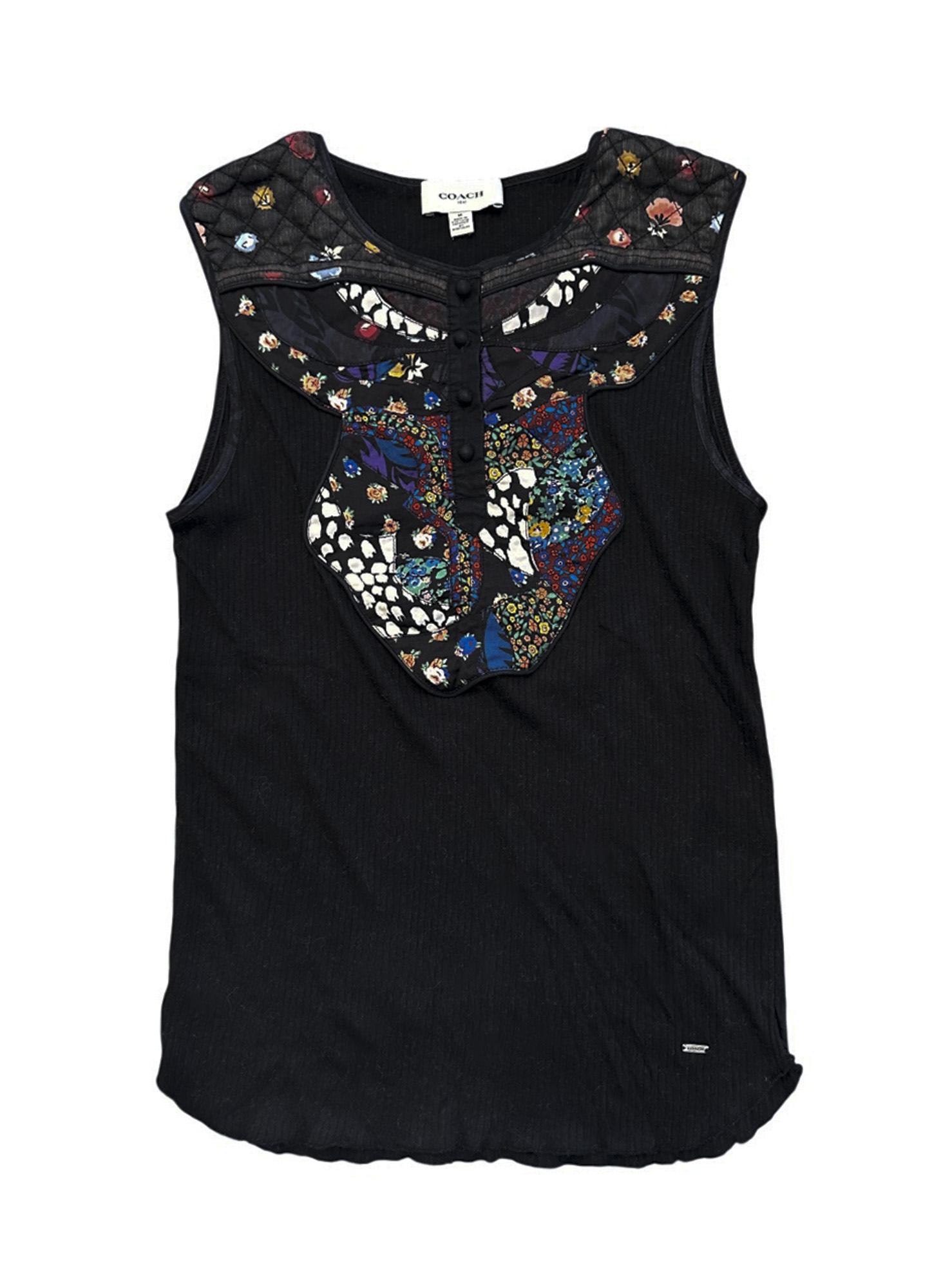 - Style: Vintage Black Patchwork Sleeveless Tank Top Blouse
