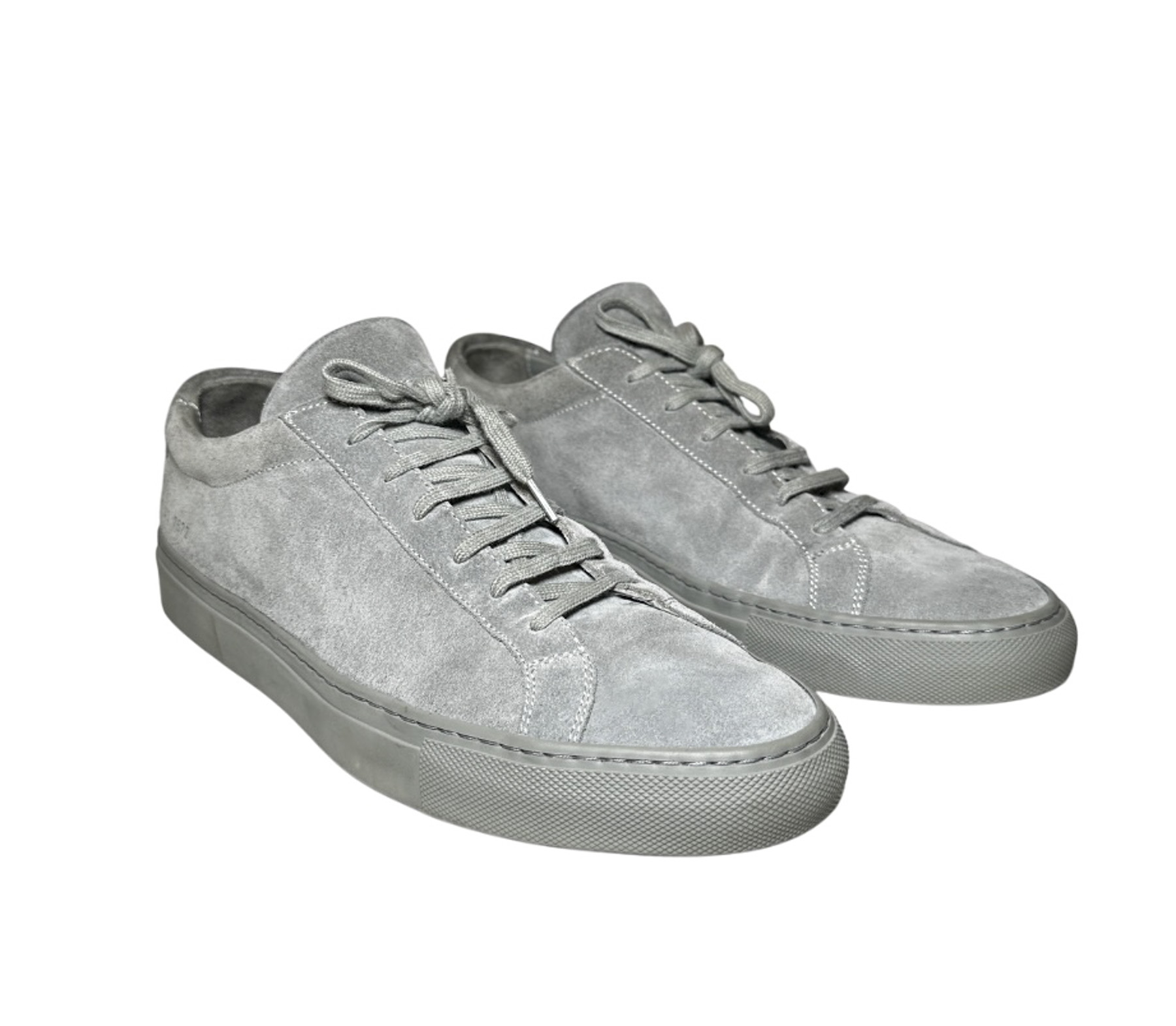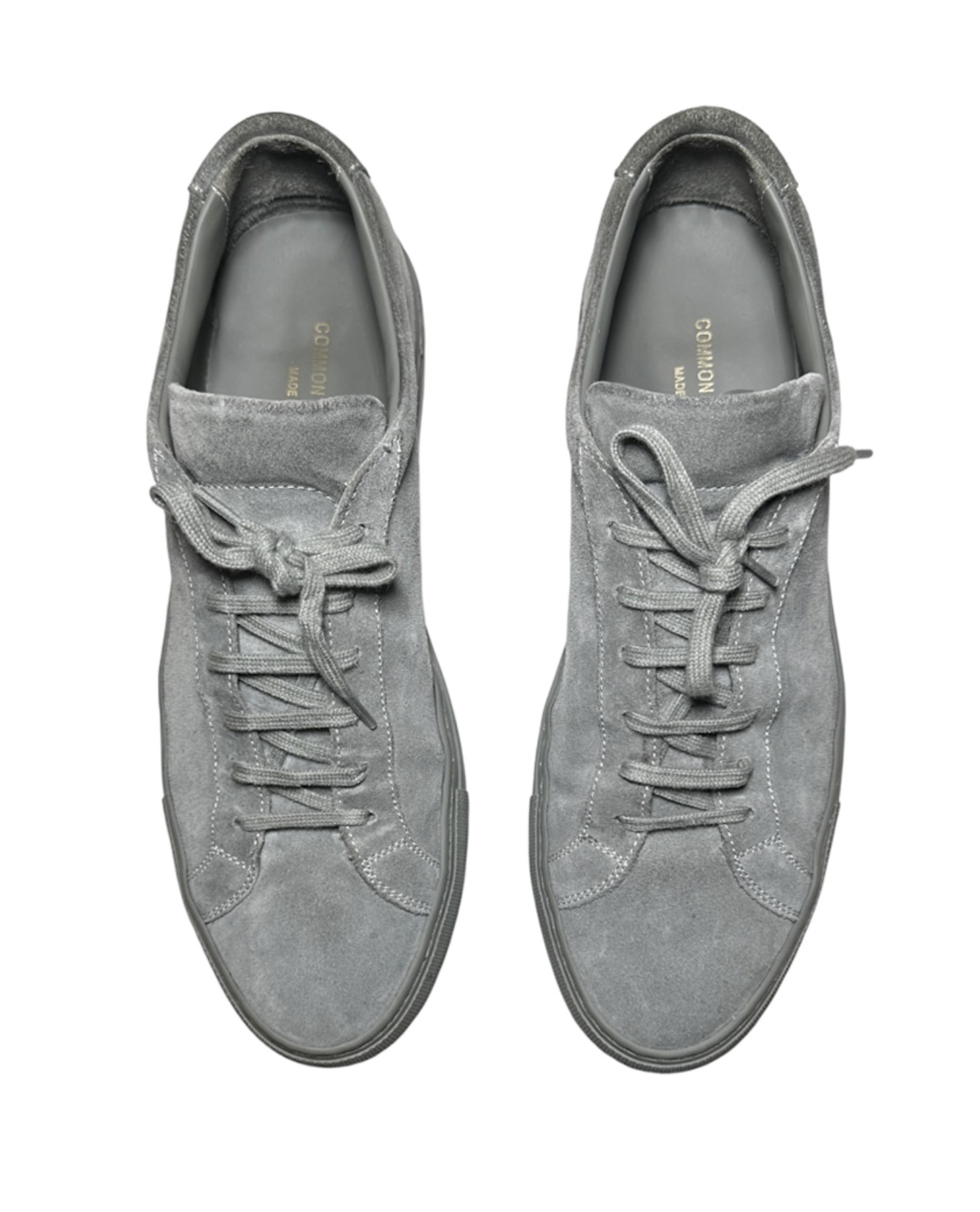 - Style: Achilles Gray Suede Low Top Lace Up Trainers Sneakers