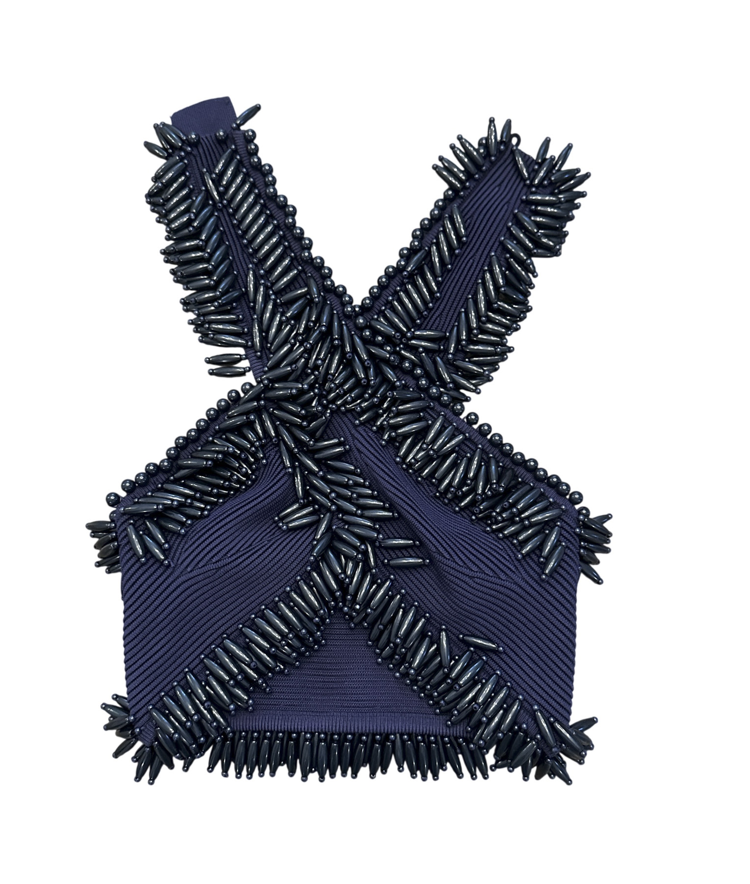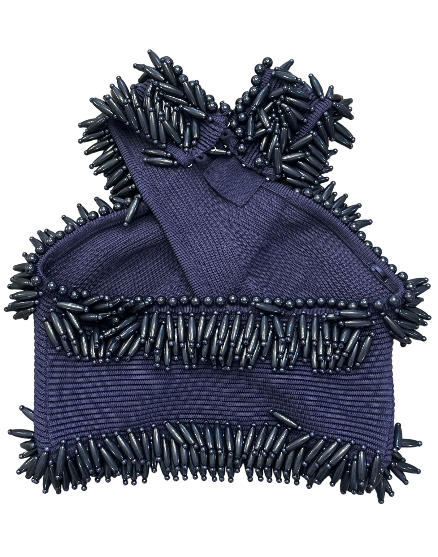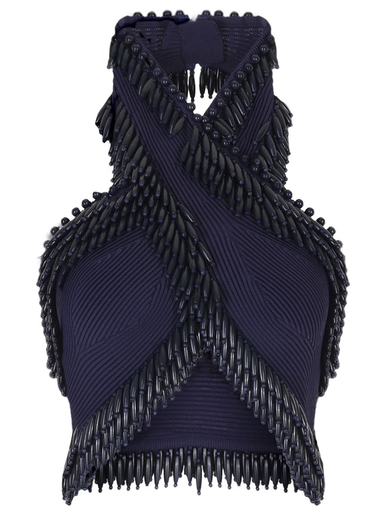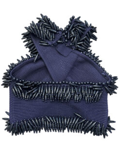 - Style: Clara Blue Knit Beaded Halter Top Blouse