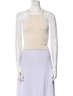 - Style: Nan Beige Knit Halter High Neck Tie Back Top Blouse
