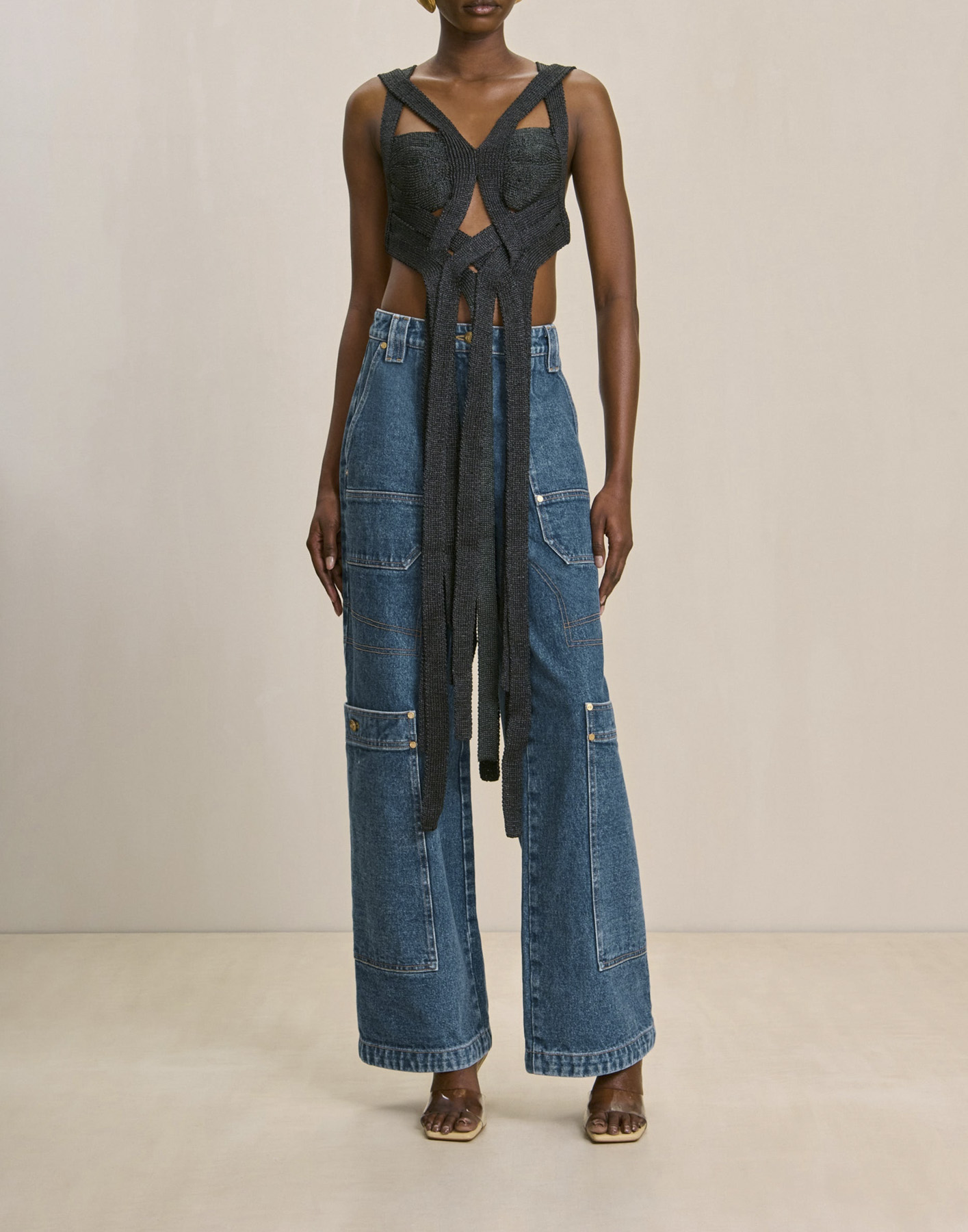 - Style: Rihanna Black Knit Crisscross Cutout Top BlouseĀ