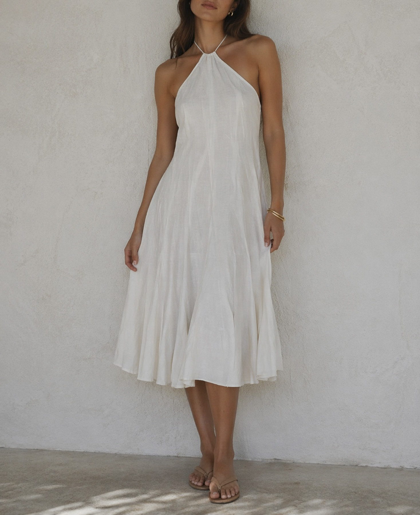 Cult Gaia White Linen Bias Cut Halter Neck Midi Dress Size Small