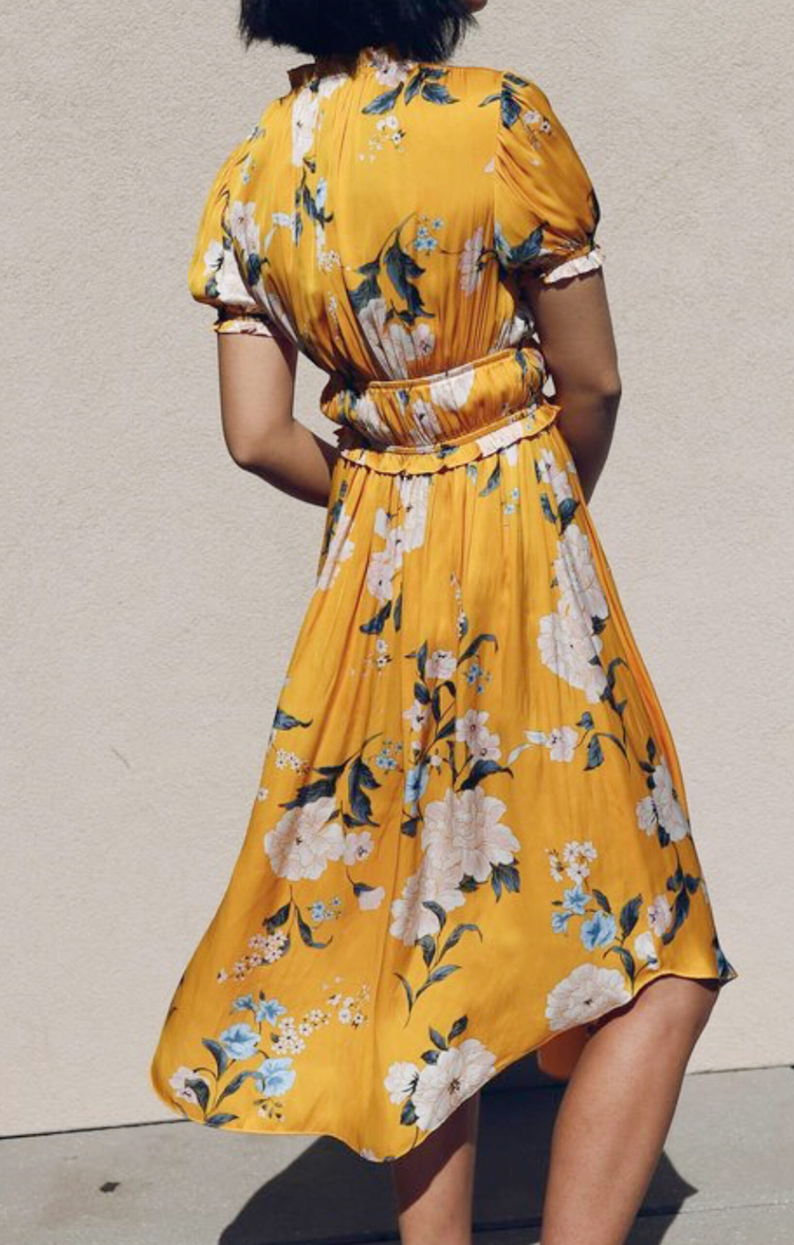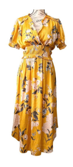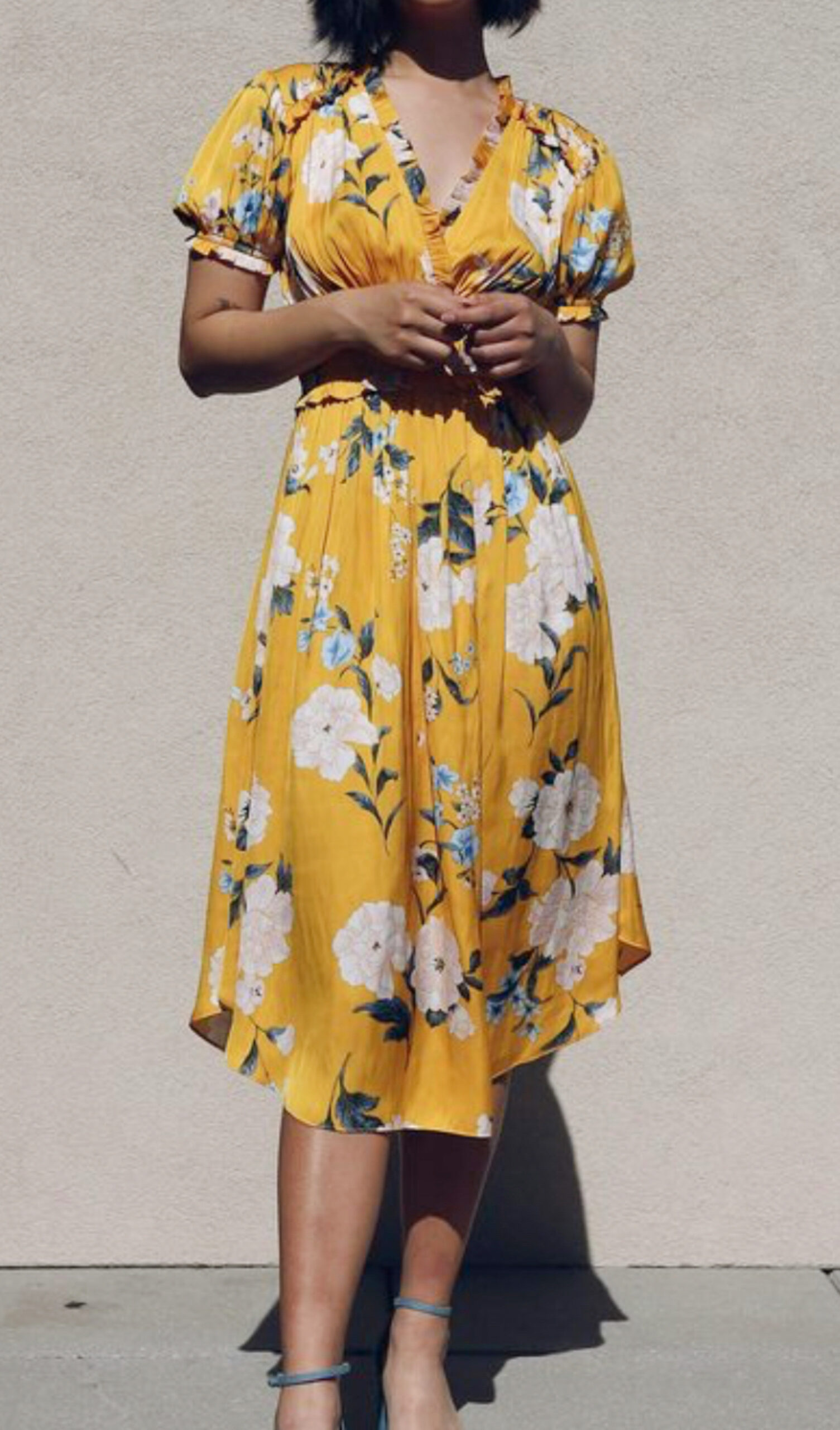 Current Air Womens Marigold Floral V-Neck Short Sleeve A-Line Midi Dress Small