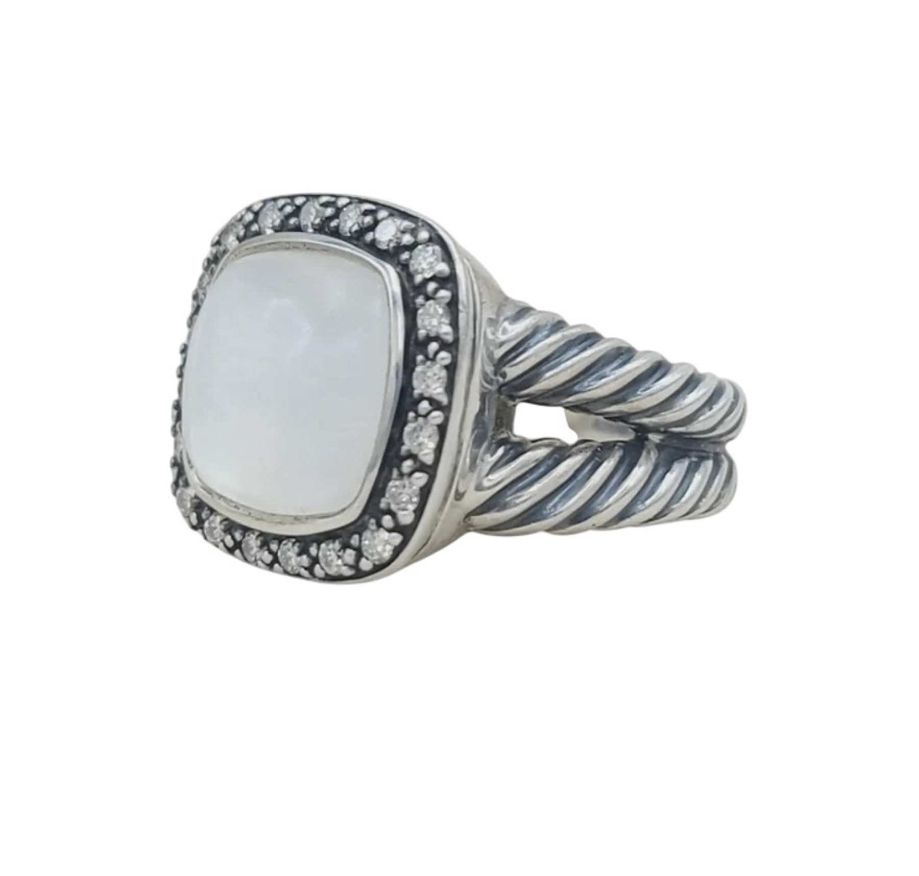 - Style: Albion 11mm Moonlight Ice Moon Quartz & Diamond Sterling Silver Ring