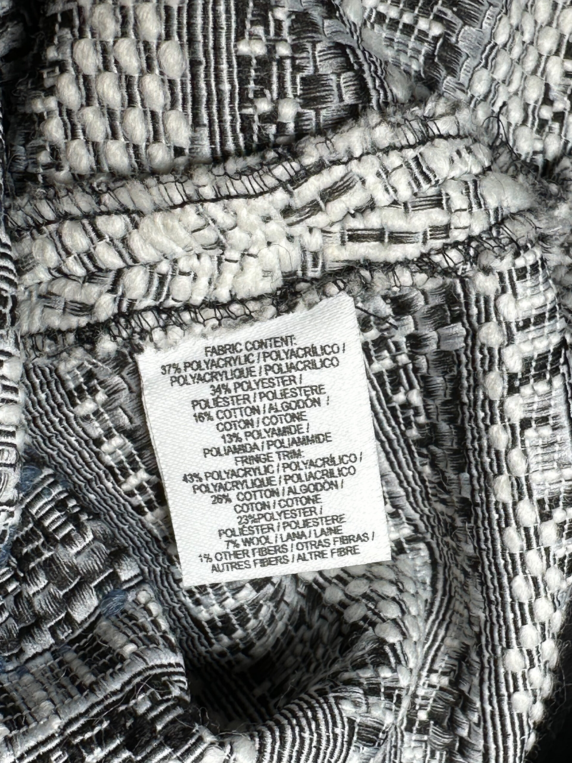 - Style: TWEED BOUCLE FRINGE MINI SKIRT