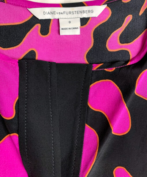 Diane Von Furstenberg DVF Firebird Silk Split Neck Cap Sleeve Mini Dress 0