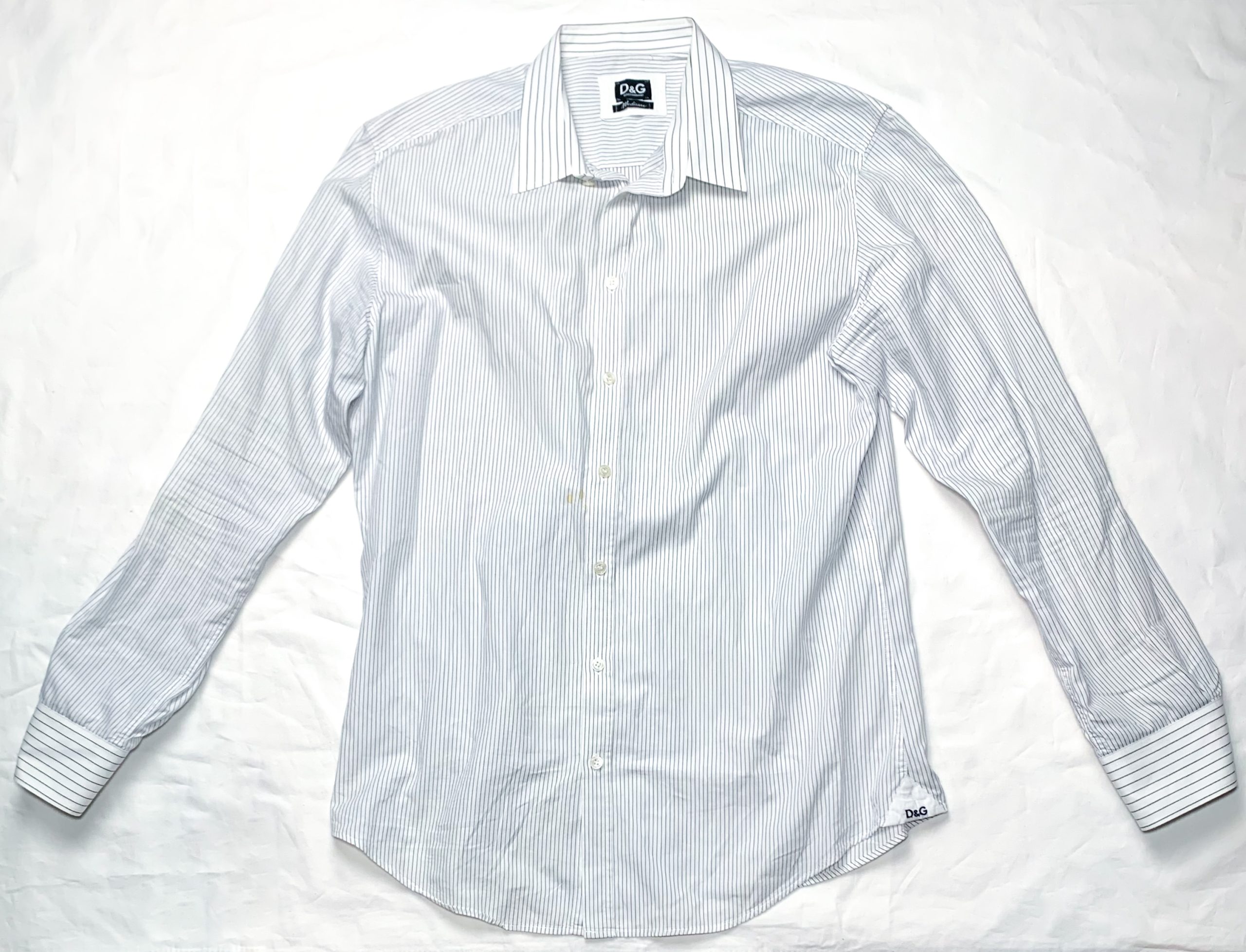 DOLCE & GABBANA ITALY MEN’S BLUE WHITE STRIPED BUTTON DOWN DRESS SHIRT MEDIUM