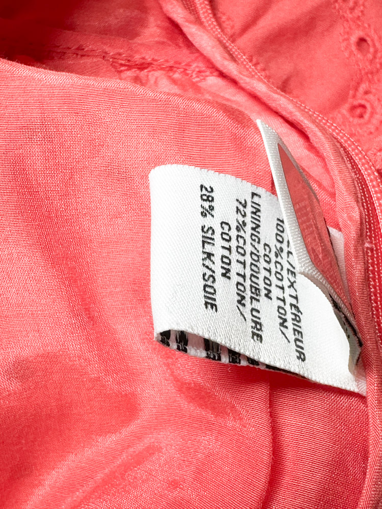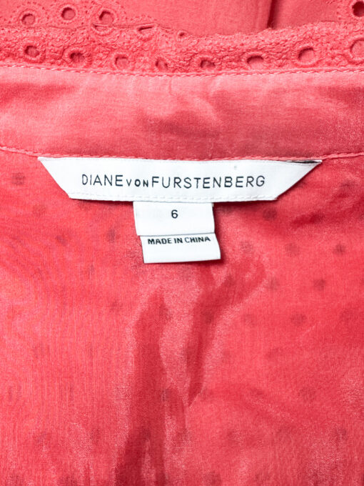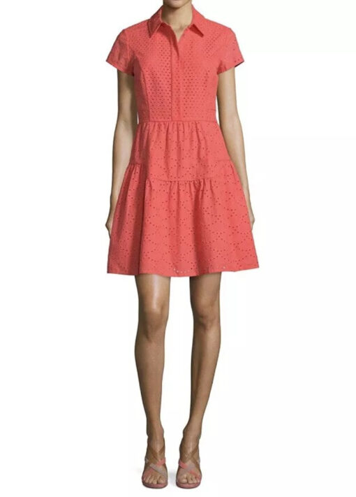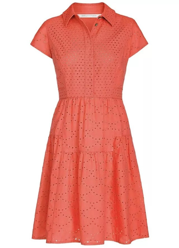 DVF Diane Von Furstenberg Skyler Eyelet Short Sleeve Mini Shirt Dress 6 Coral