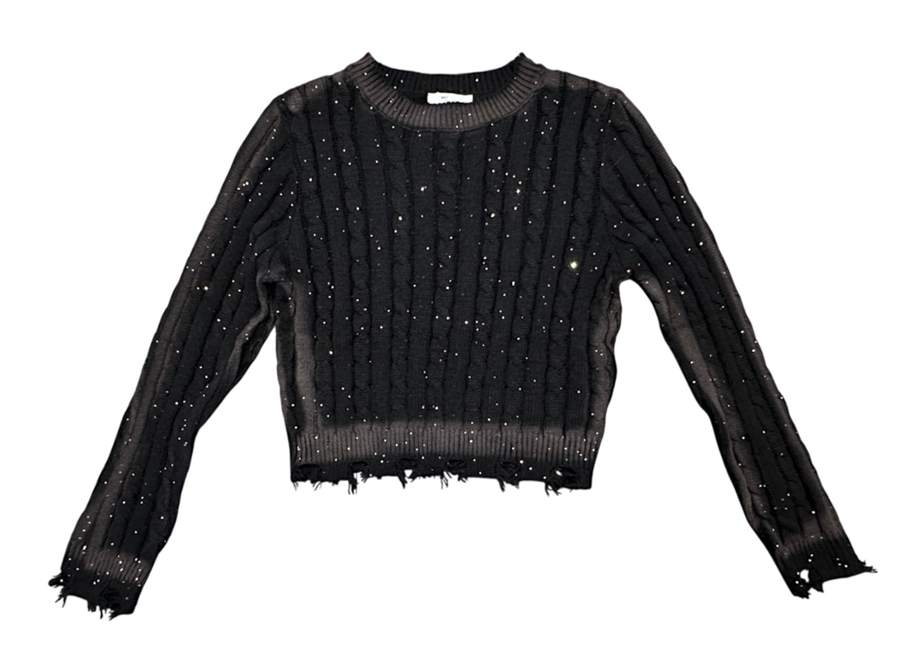 - Style: Black Sequin Embellished Knit Pullover Sweater