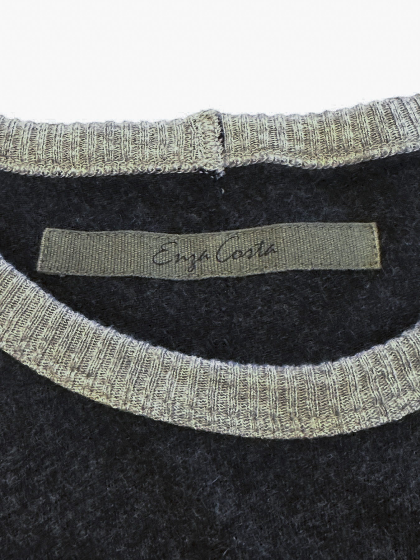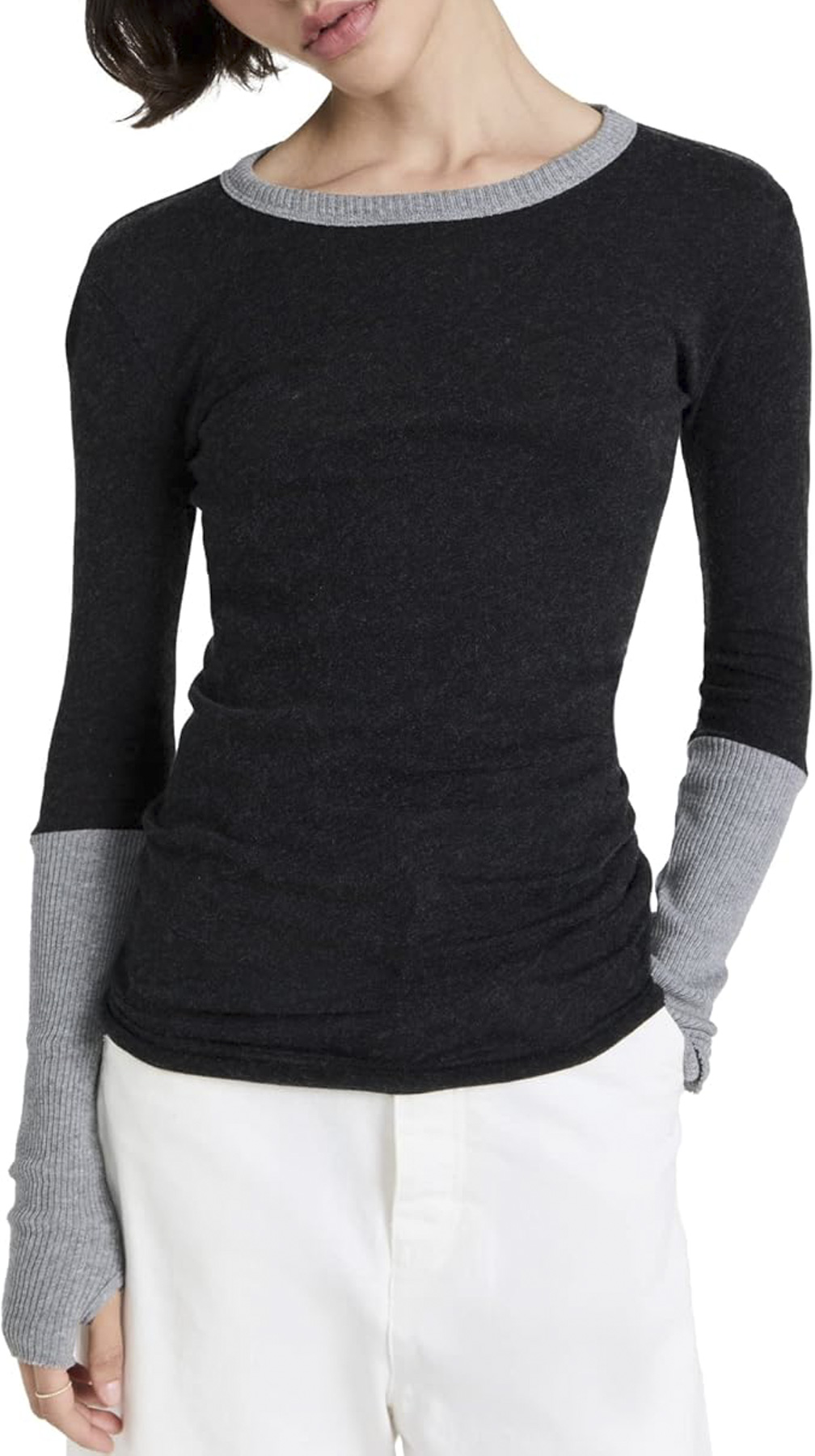 Enza Costa Cashmere Easy Cuff Crew Neck Long Sleeve Thumbhole Shirt Top Medium