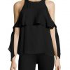 Michelle Mason Black Silk Satin Draped One Sleeve Top Blouse Size 4