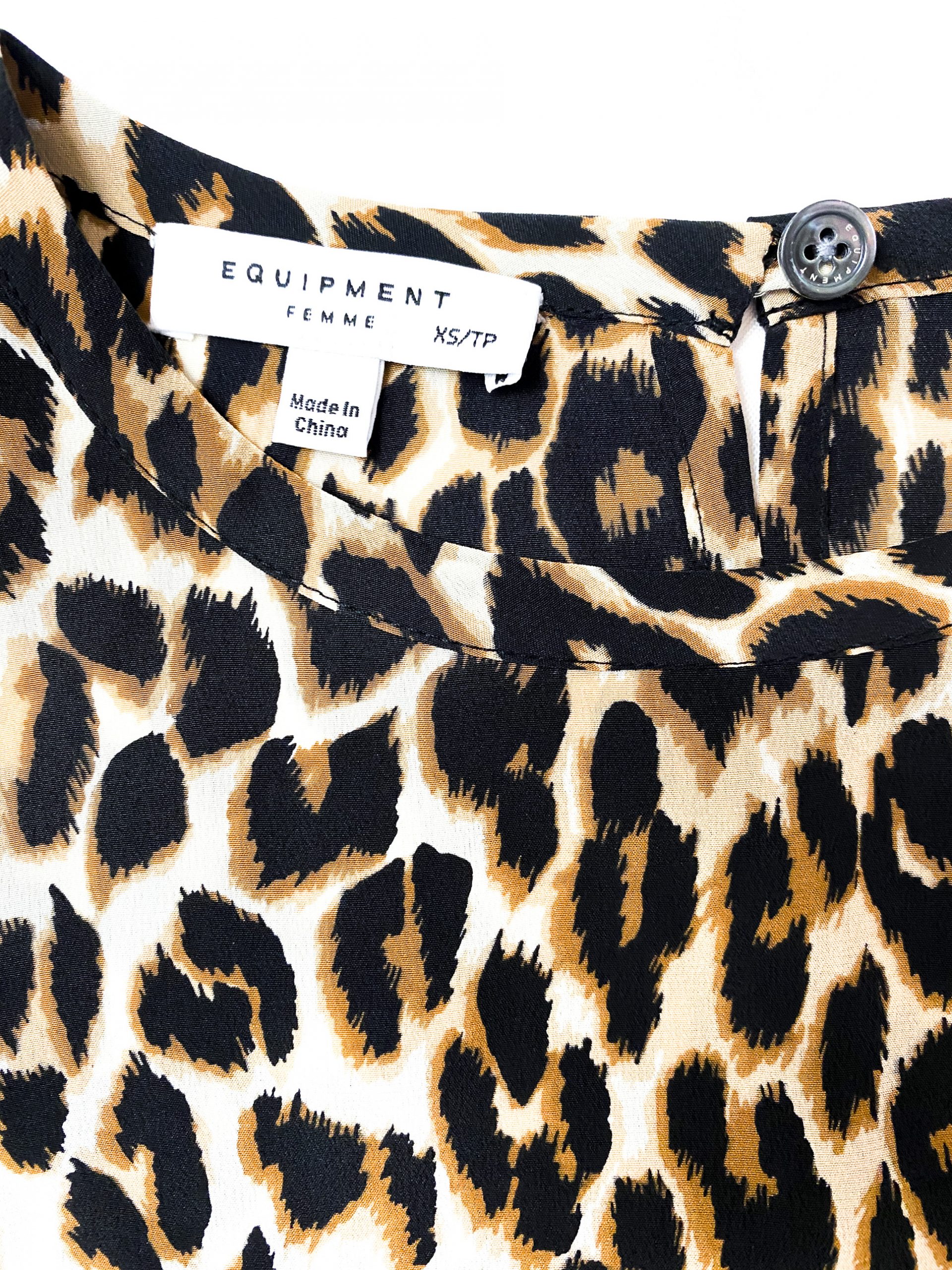 EQUIPMENT FEMME NEW LEOPARD PRINT SILK MINI DRESS SIZE XS