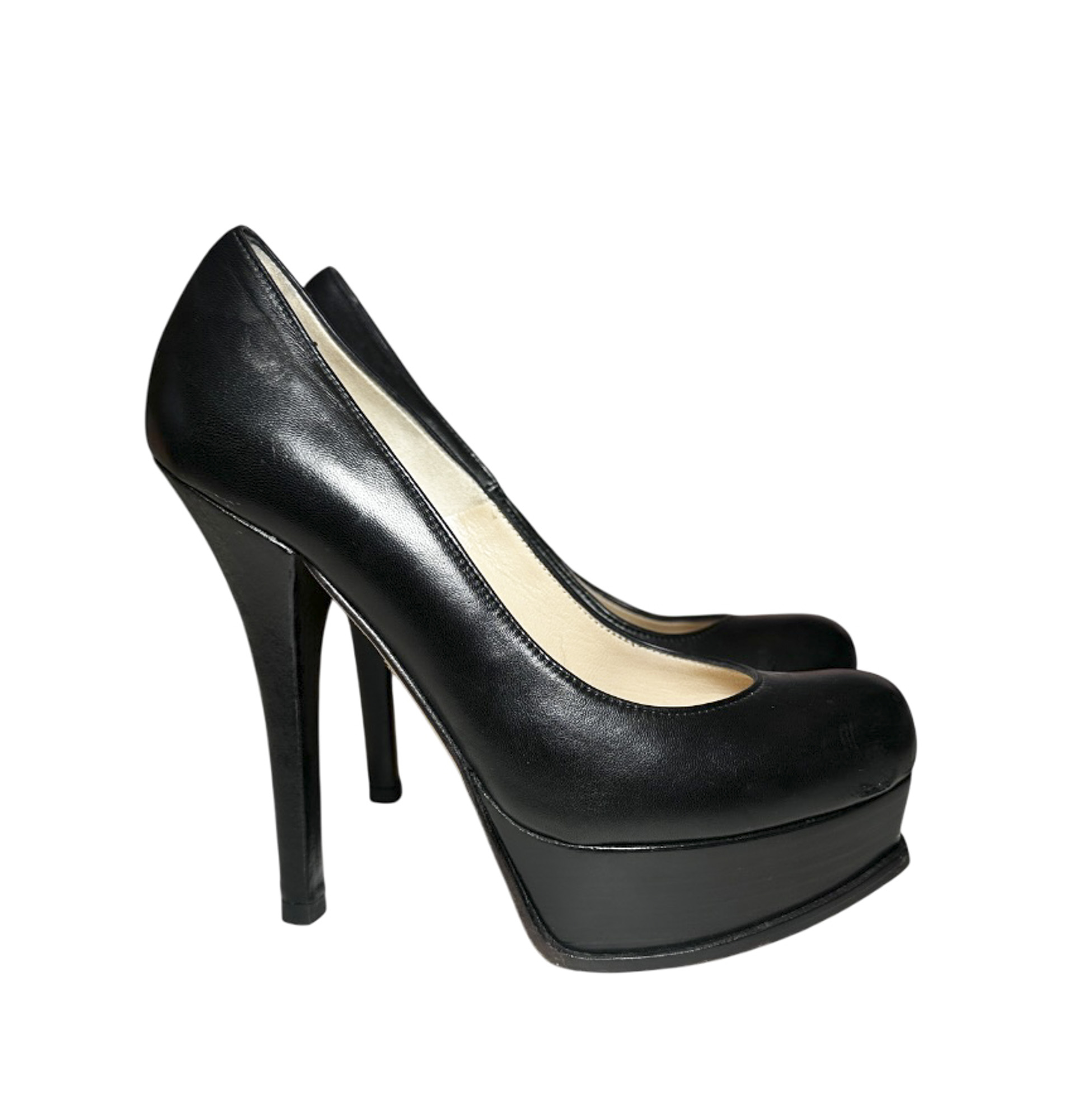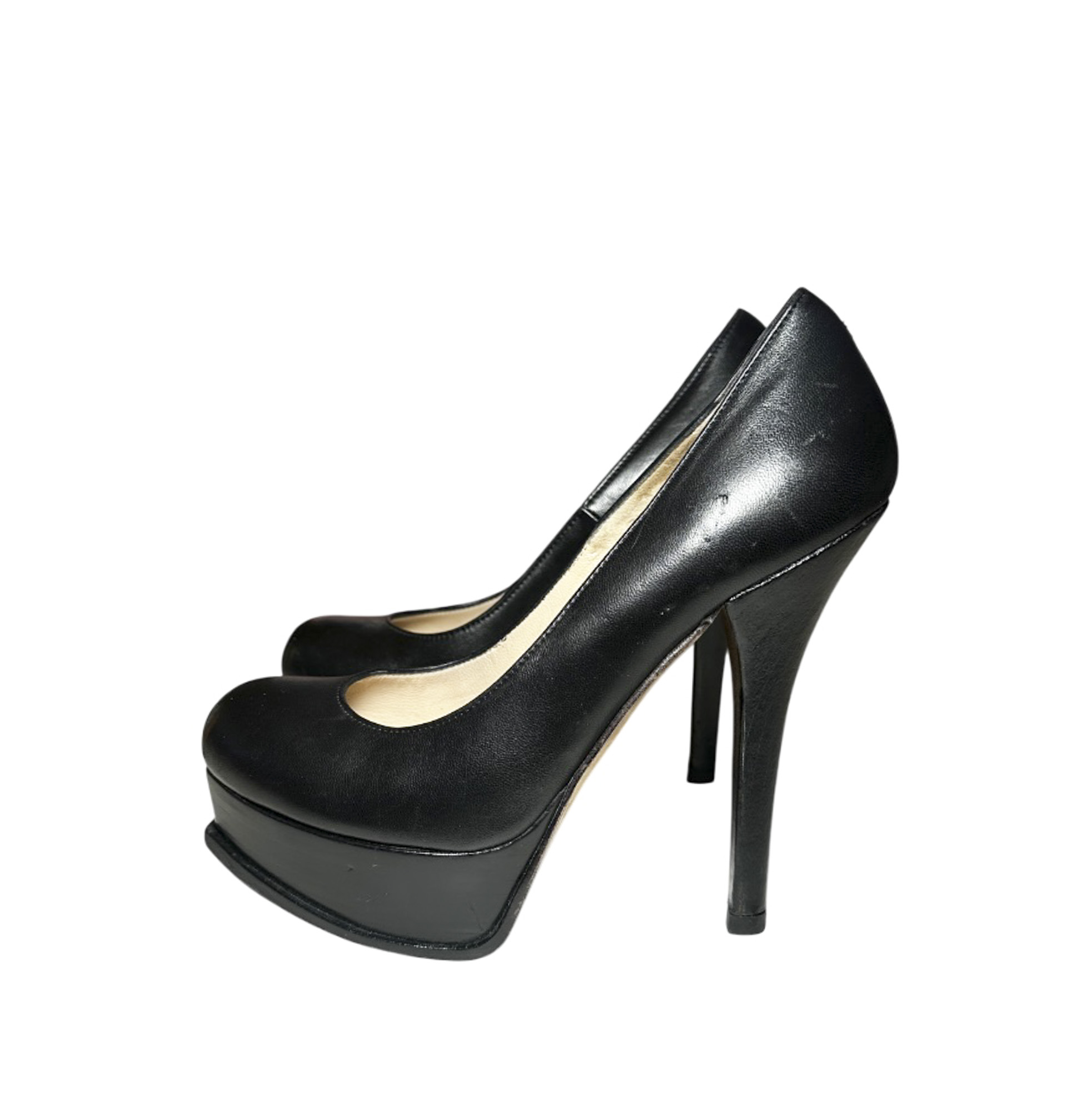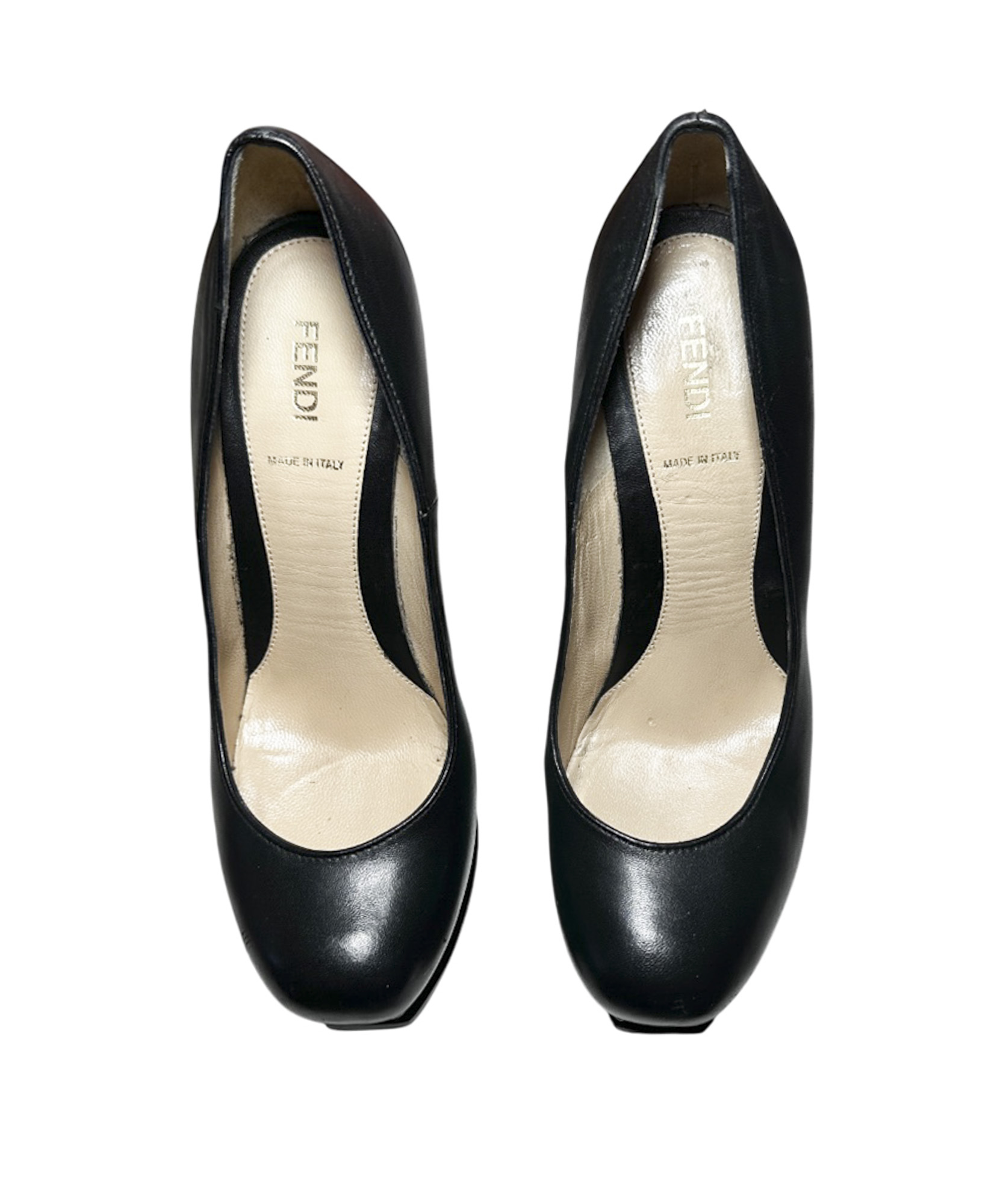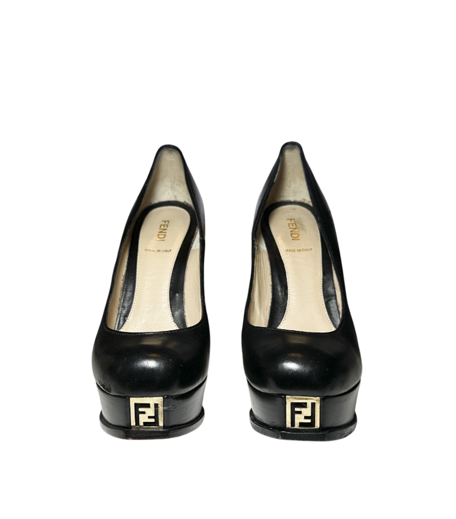 Fendi Fendista Black Leather FF Logo Platform Heels Pumps Size 39