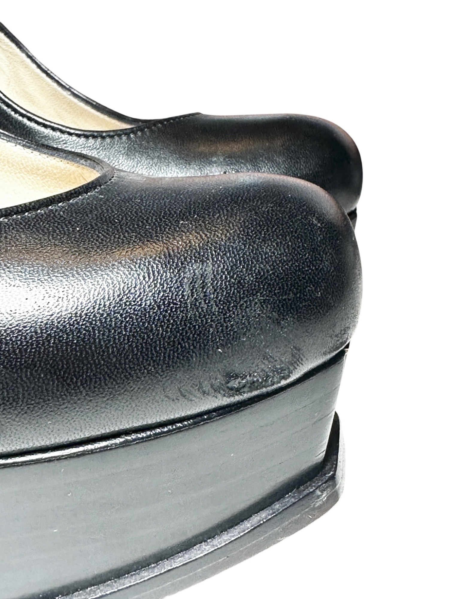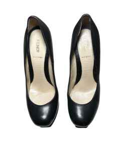 • Style: Fendista Black Leather FF Logo Platform Heels Pumps