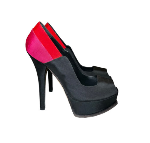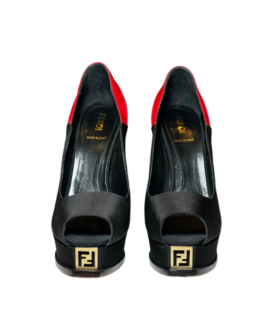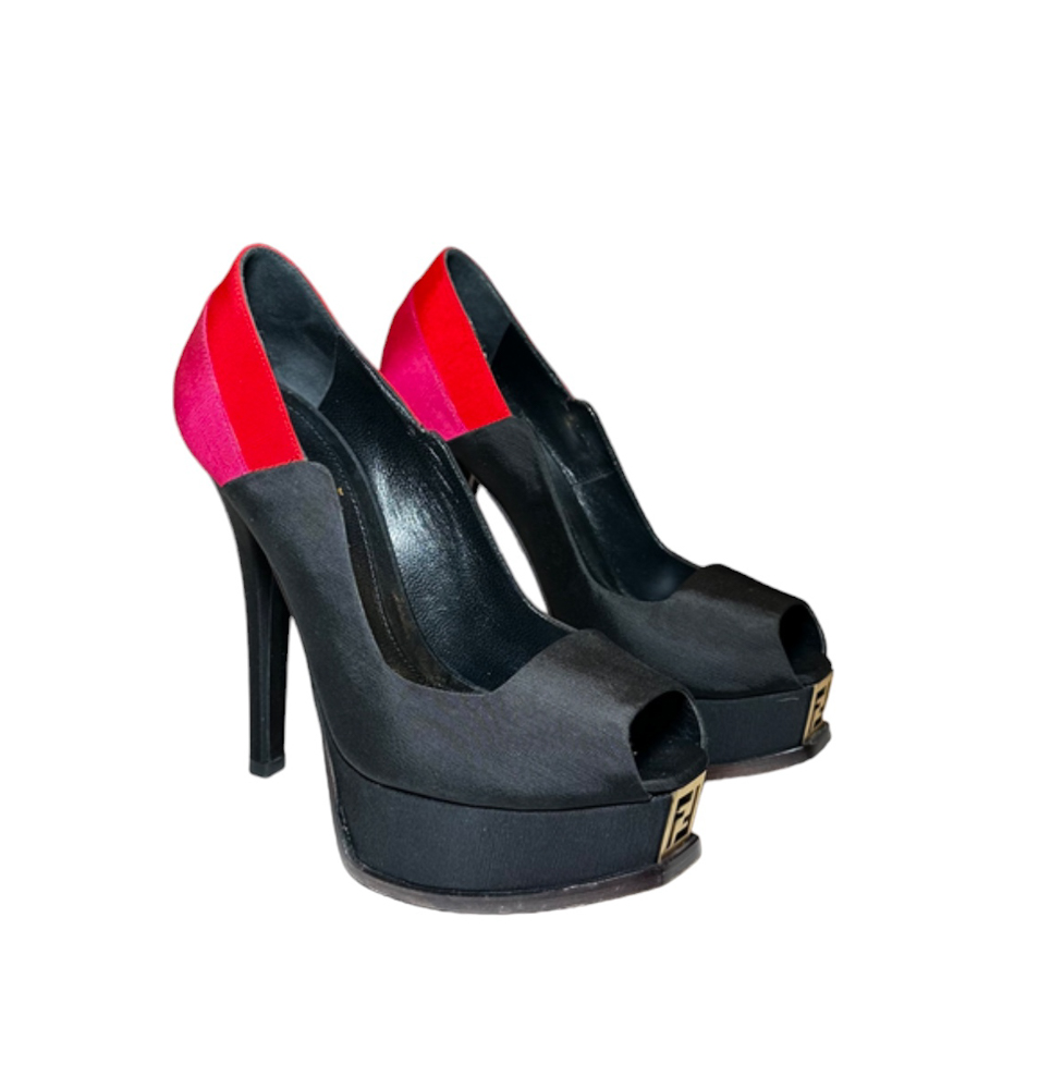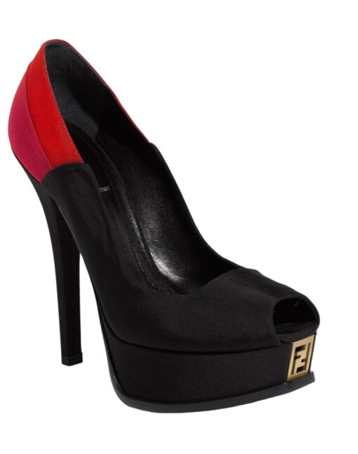 - Style: Fendista Peep Toe FF Logo Plate Platform Pumps Stiletto Heels