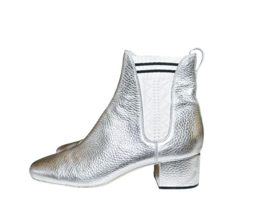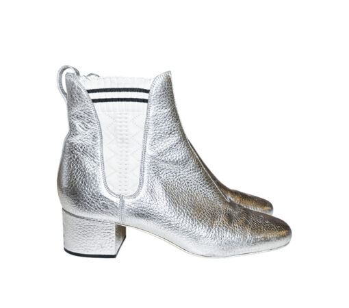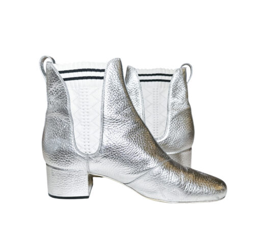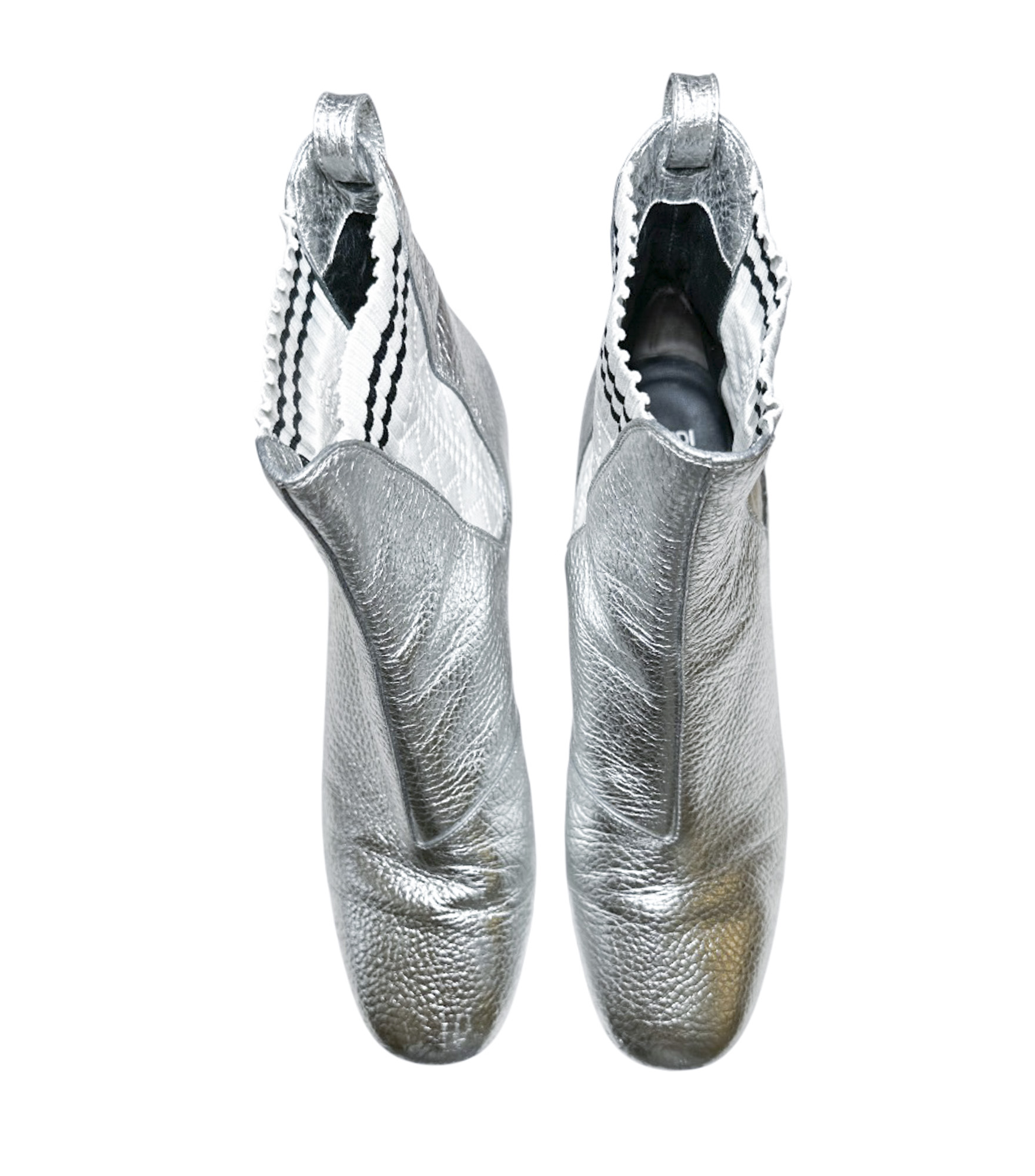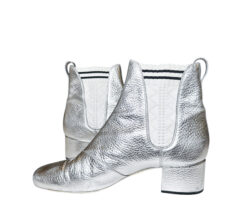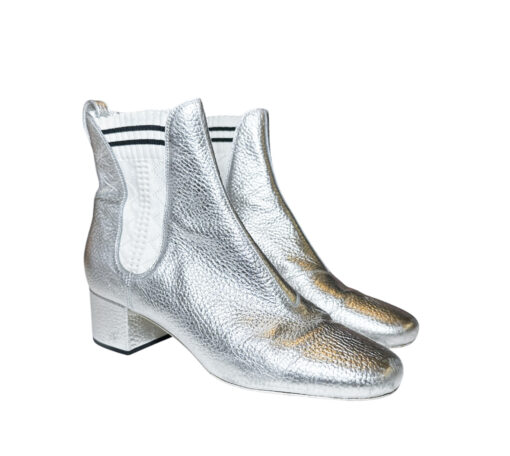 • Style: Silver Metallic Leather Block Heels Chelsea Ankle Boots