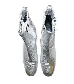 Fendi Silver Metallic Leather Block Heels Chelsea Ankle Boots Size 40