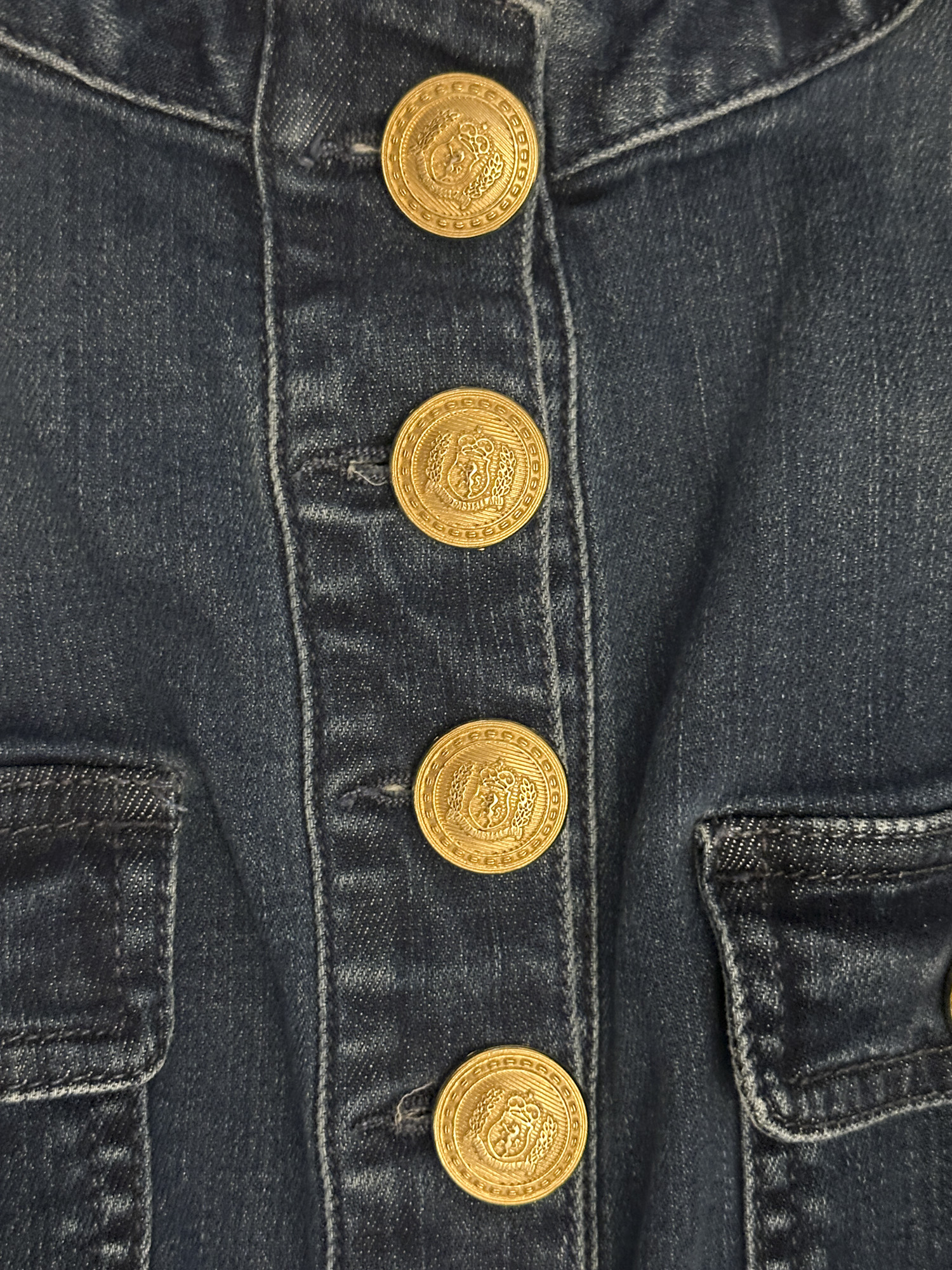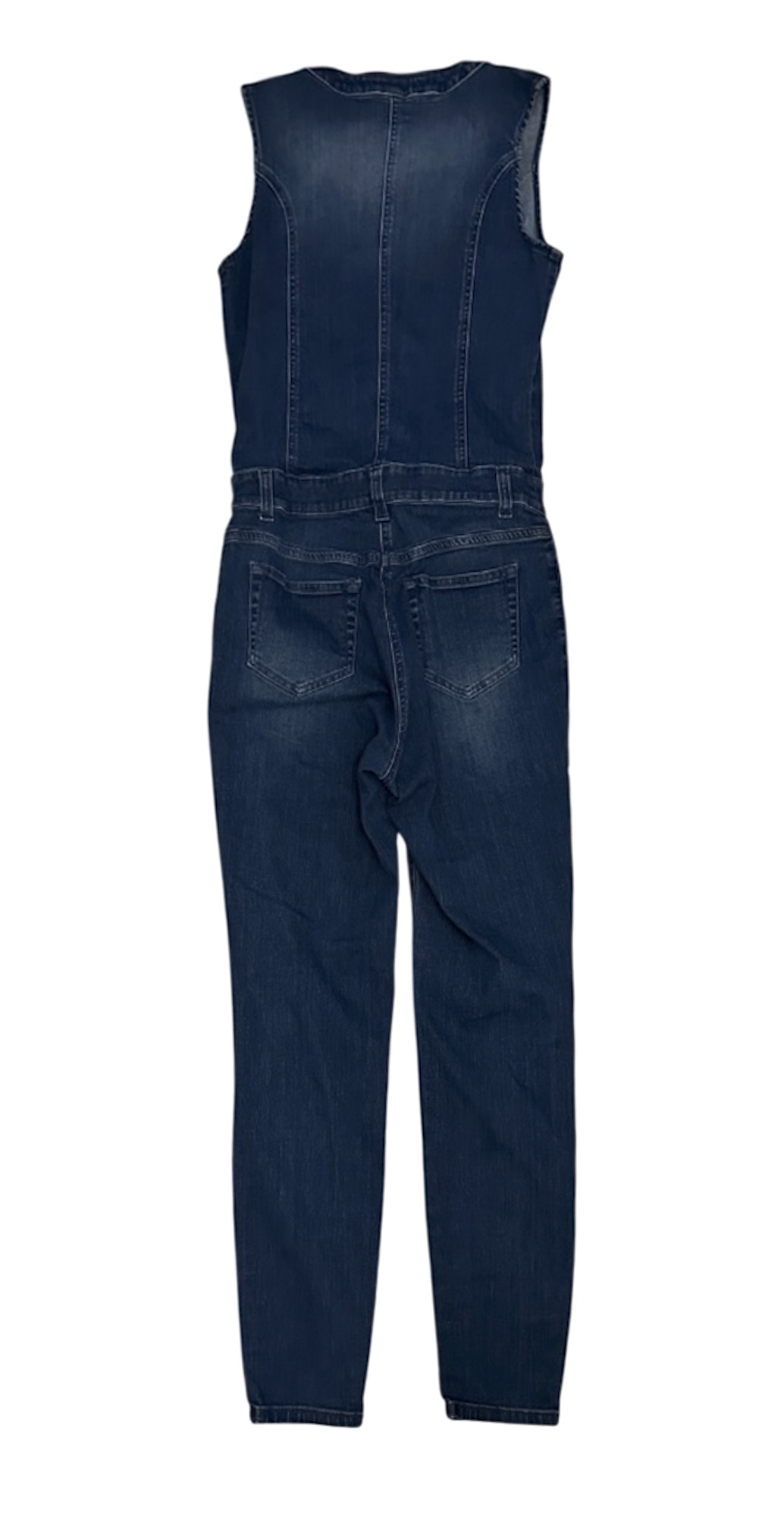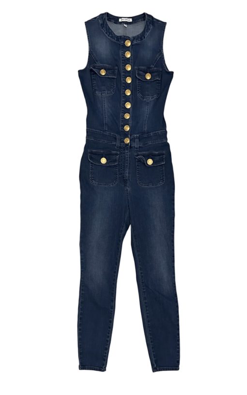 Flavio Castellani Blue Denim Gold Button Designer Sleeveless Jumpsuit 42 Italy