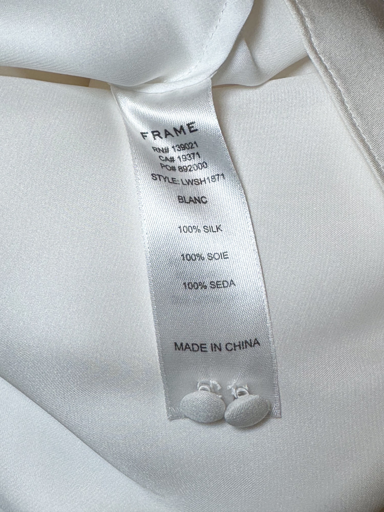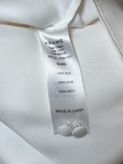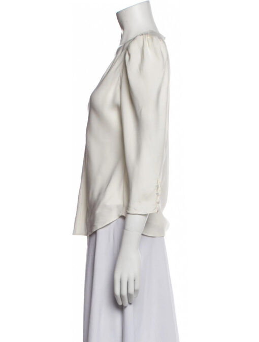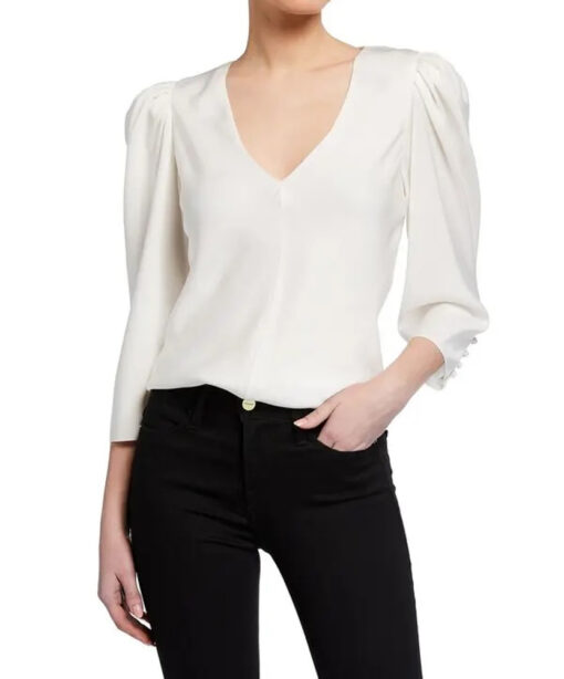 FRAME Ivory Silk Shirred V-Neck 3/4 Sleeve Top Blouse Small