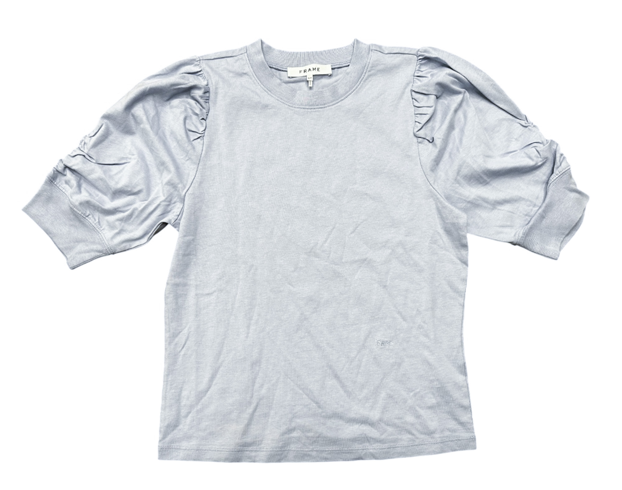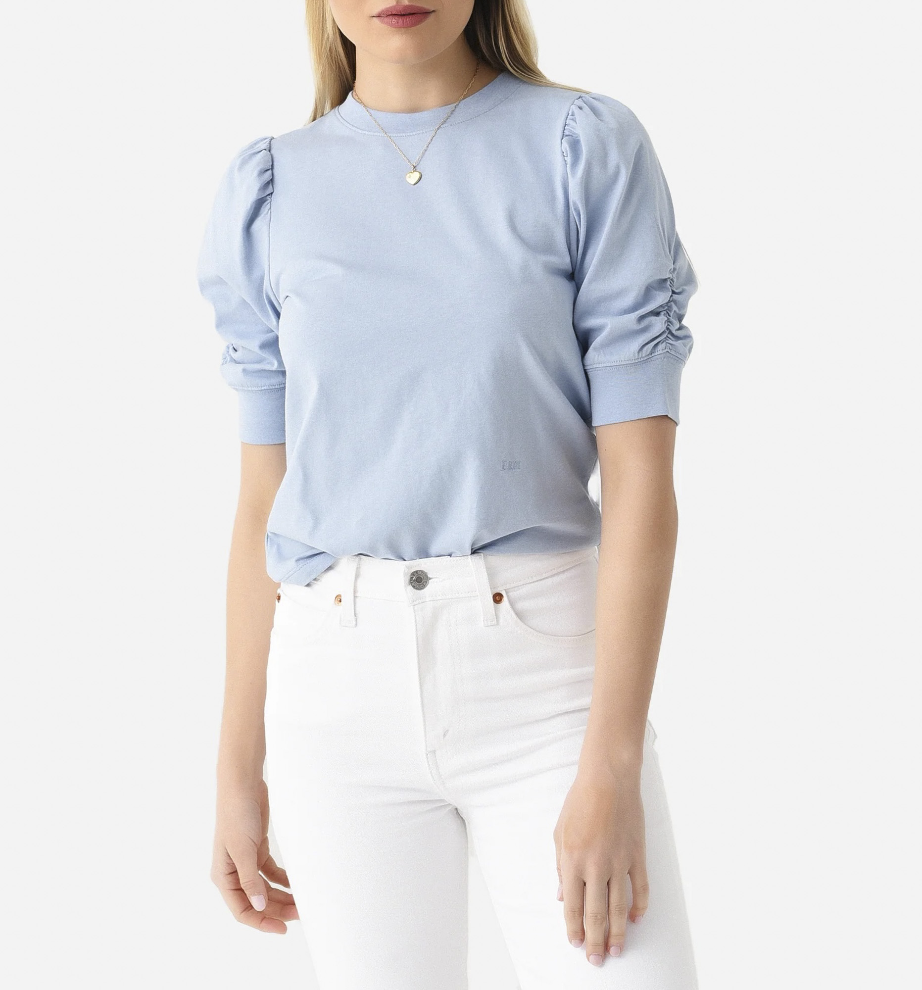- Style: Frankie Blue Ruched Puff Sleeve Shirt Top Blouse