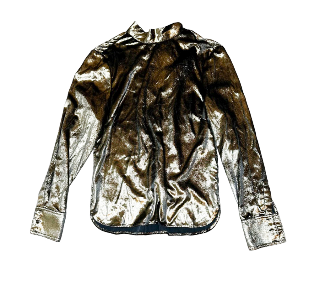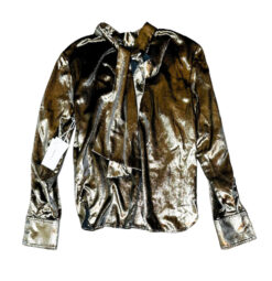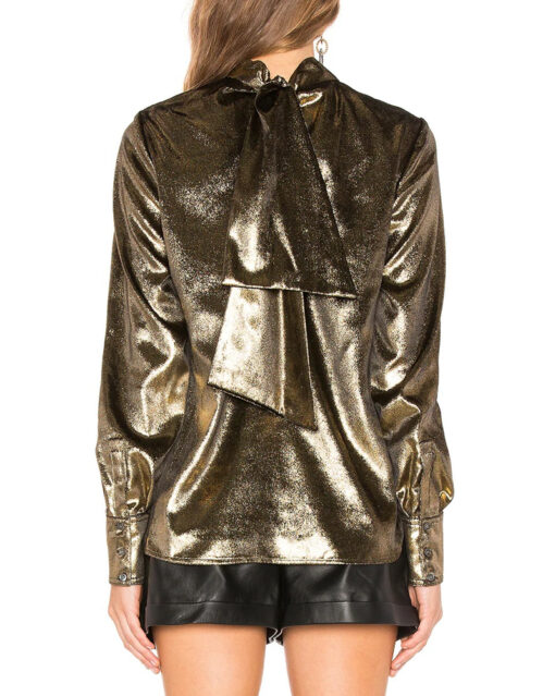 - Style: Long Sleeve Metallic Tie Neck Top Blouse