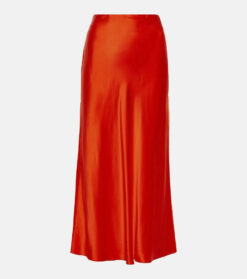 - Style: Orange Silk Satin Midi Skirt