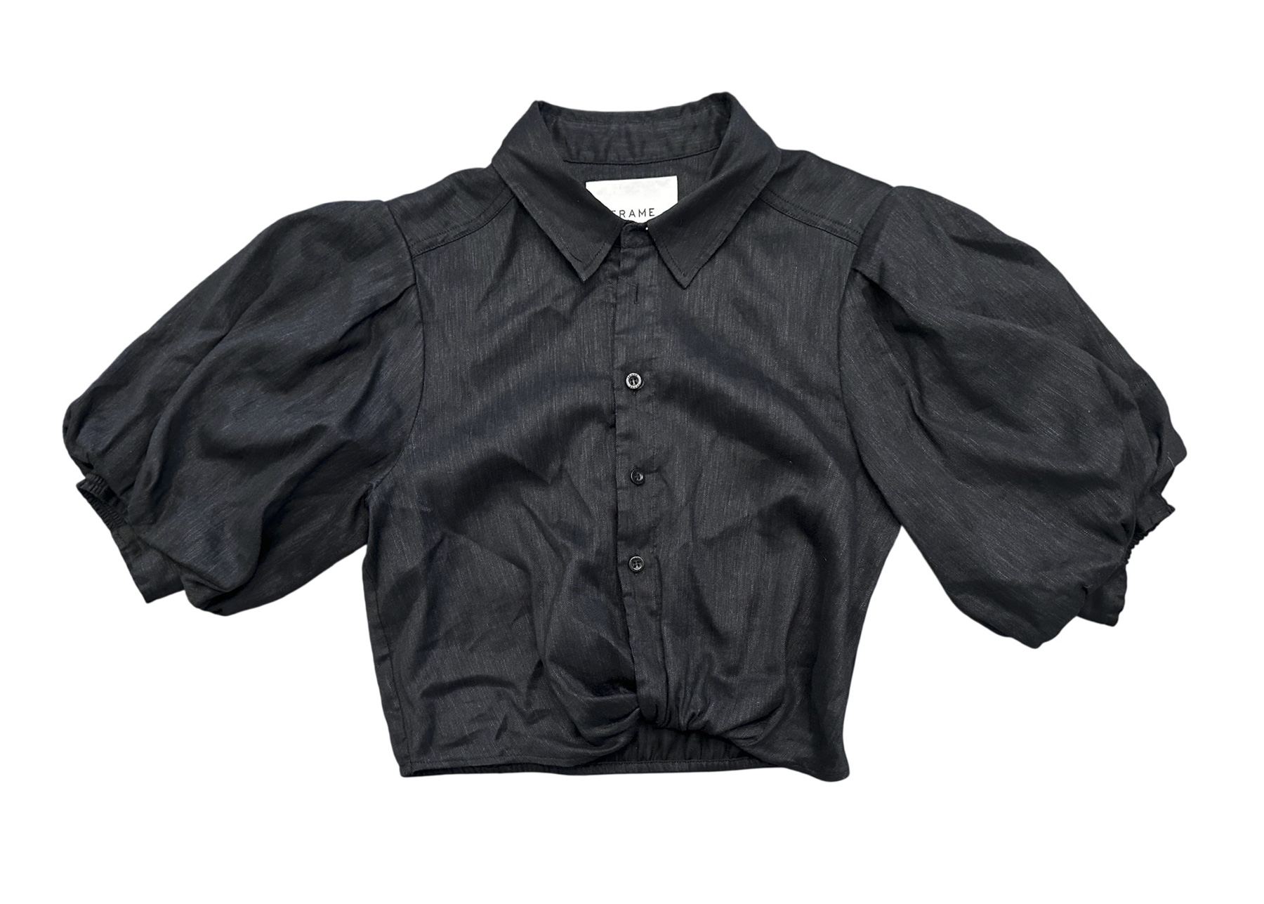 - Style: Voluminous Twist Black Puff Sleeve Button Up Top Blouse