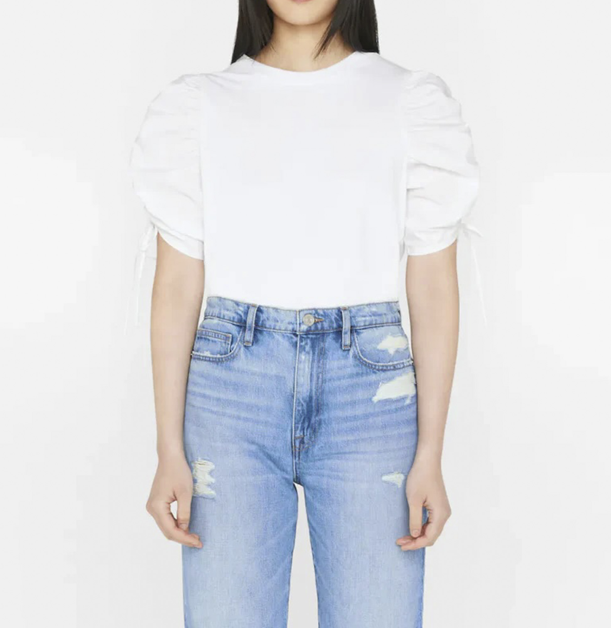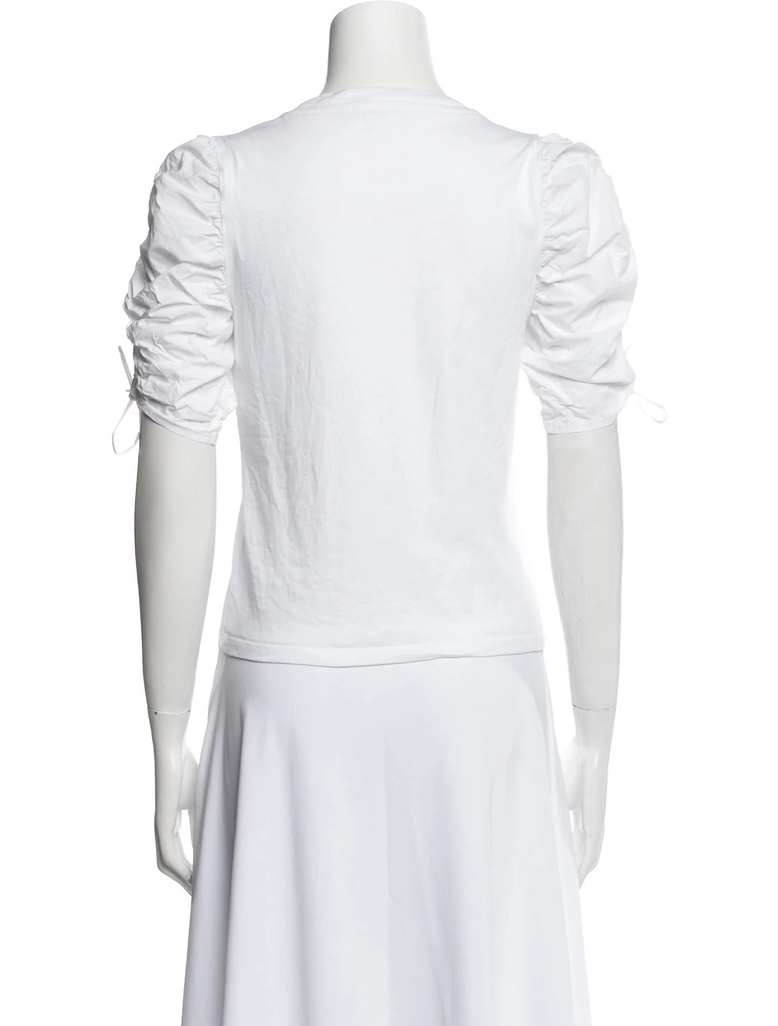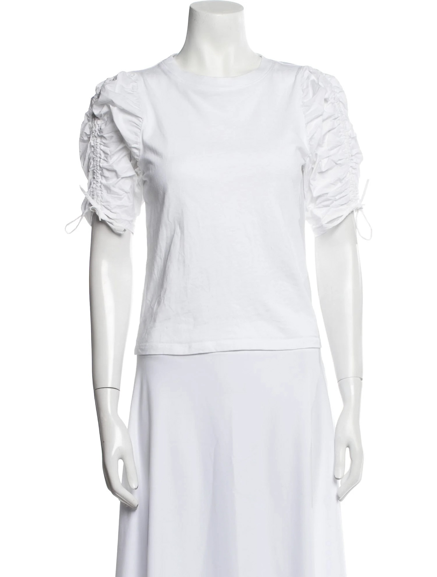 - Style: WHITE CREW NECK PUFF SLEEVE TOP BLOUSE