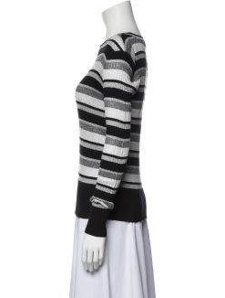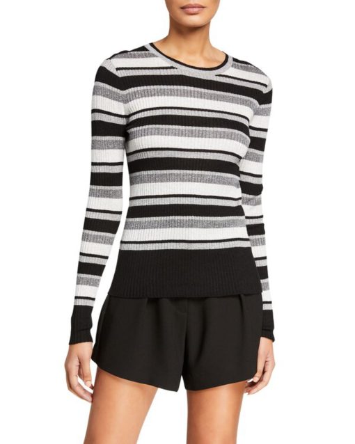 - Style: SILVER METALLIC STRIPED CREW NECK SWEATER