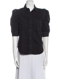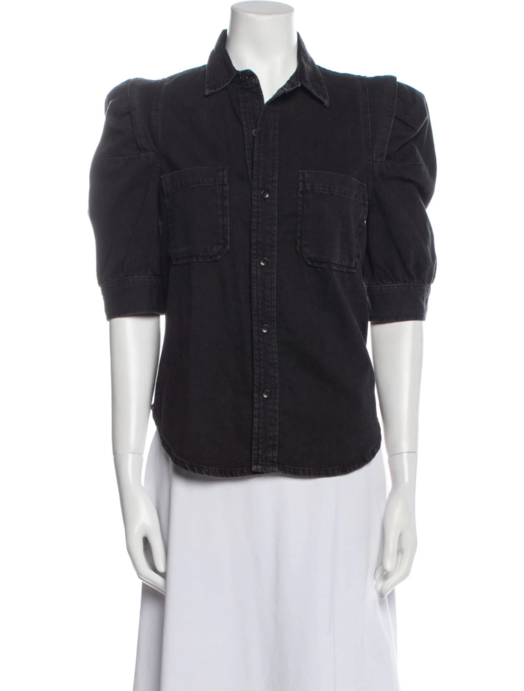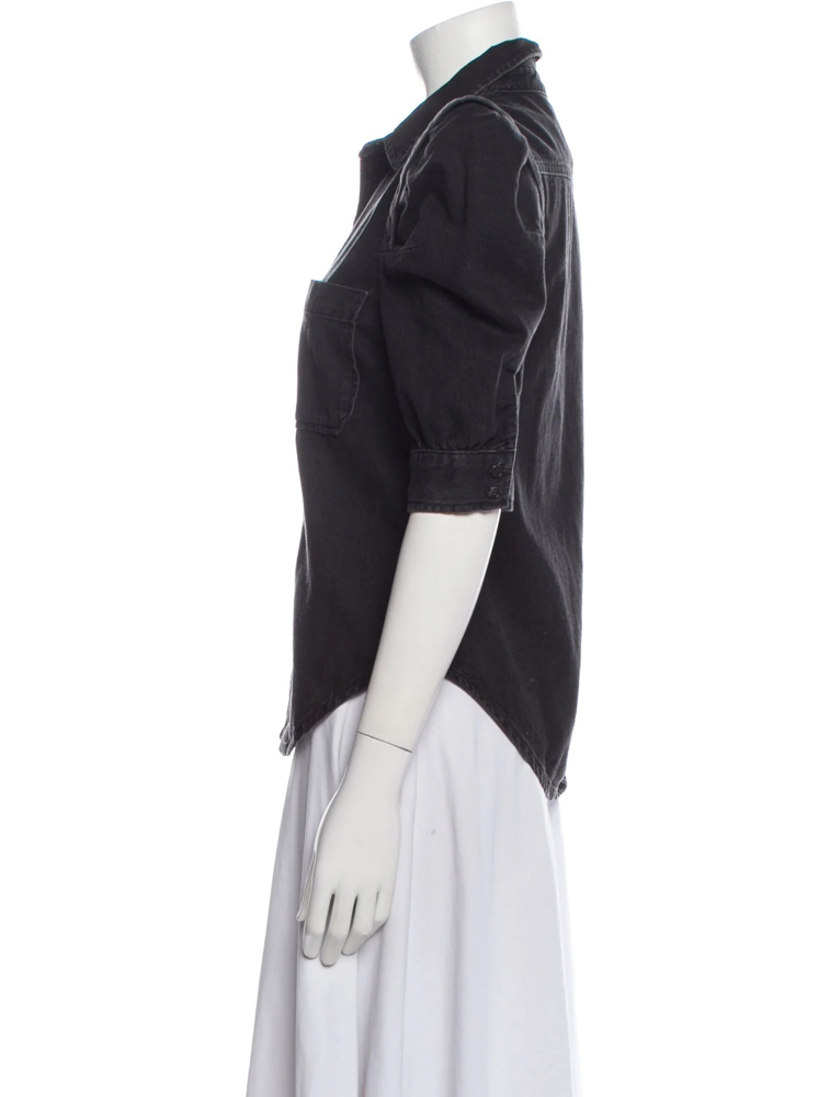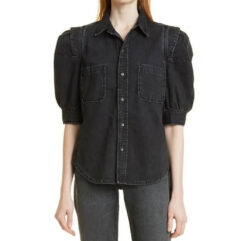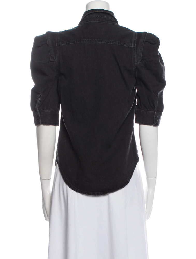 - Style: Rosette Denim Puff Sleeve Shirt Top Blouse