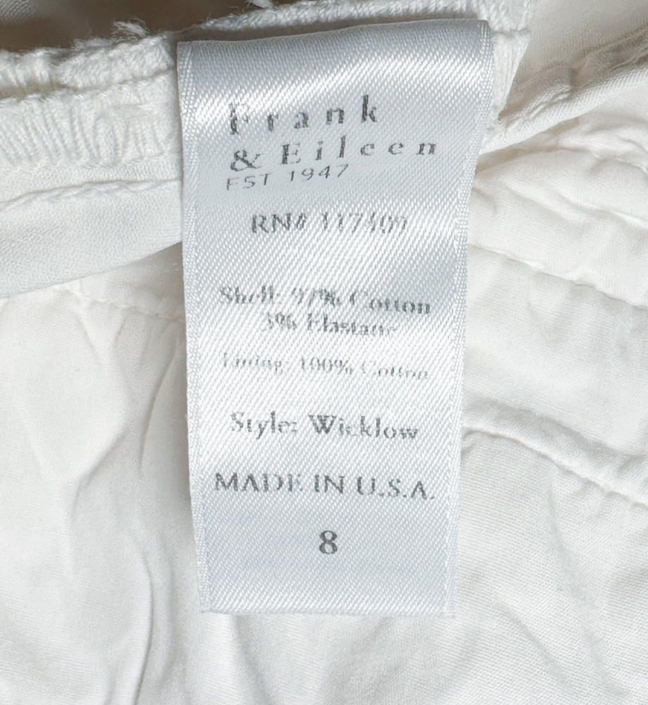 Frank & Eileen Wicklow Italian Performance Twill Chino Pants Size 8 White