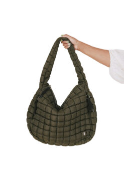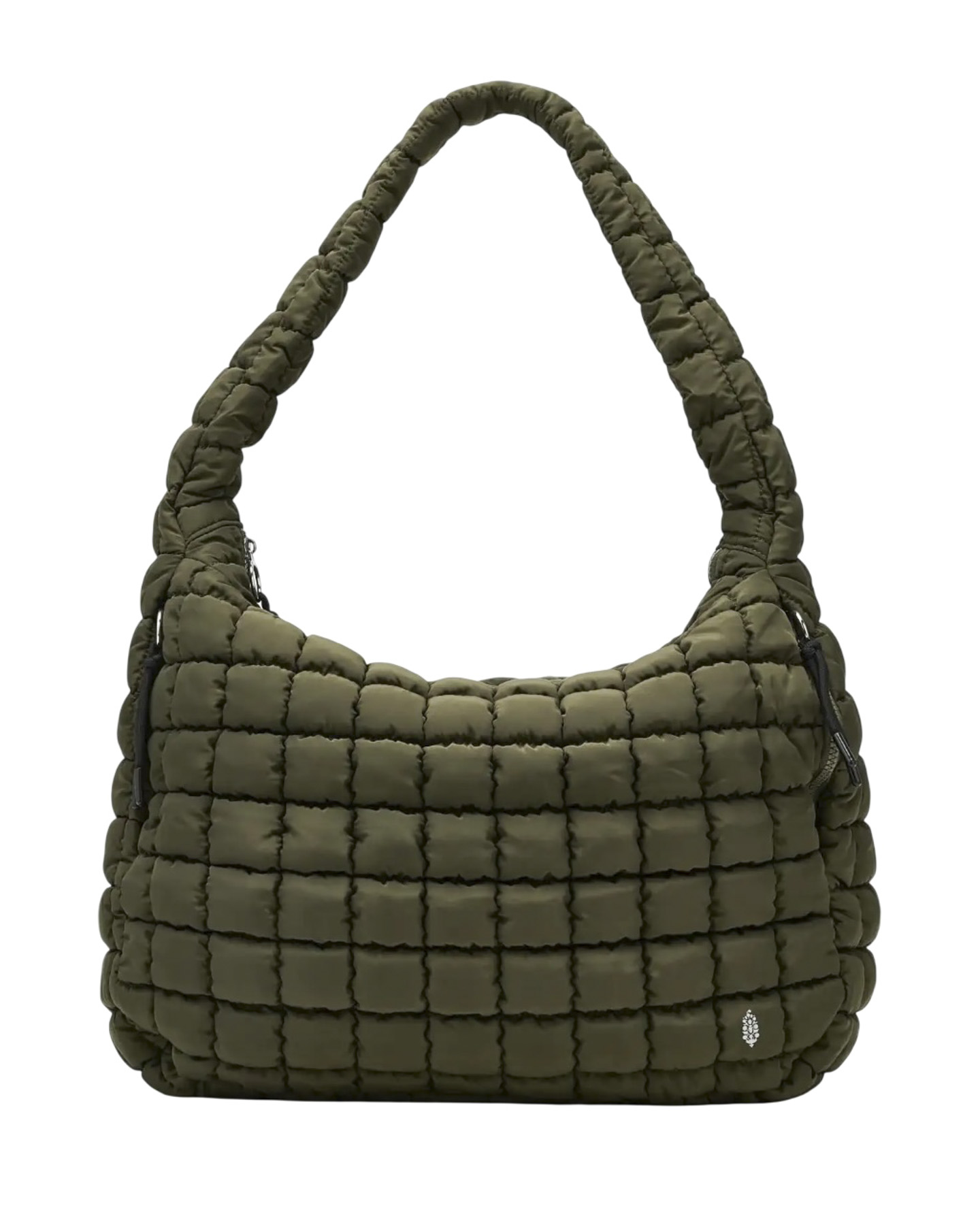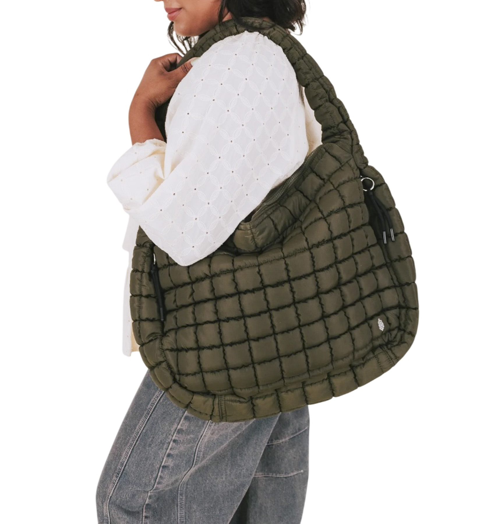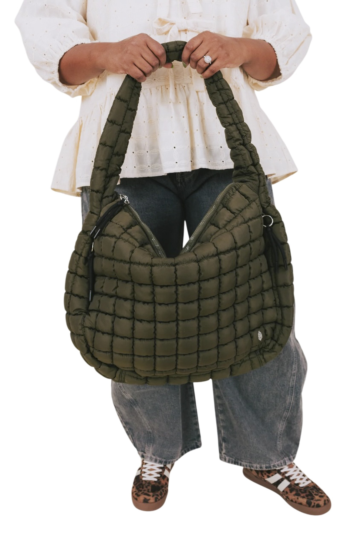 FREE PEOPLE Seagrass Green Large Quilted Carryall Tote Bag With Zip Pouch NEW