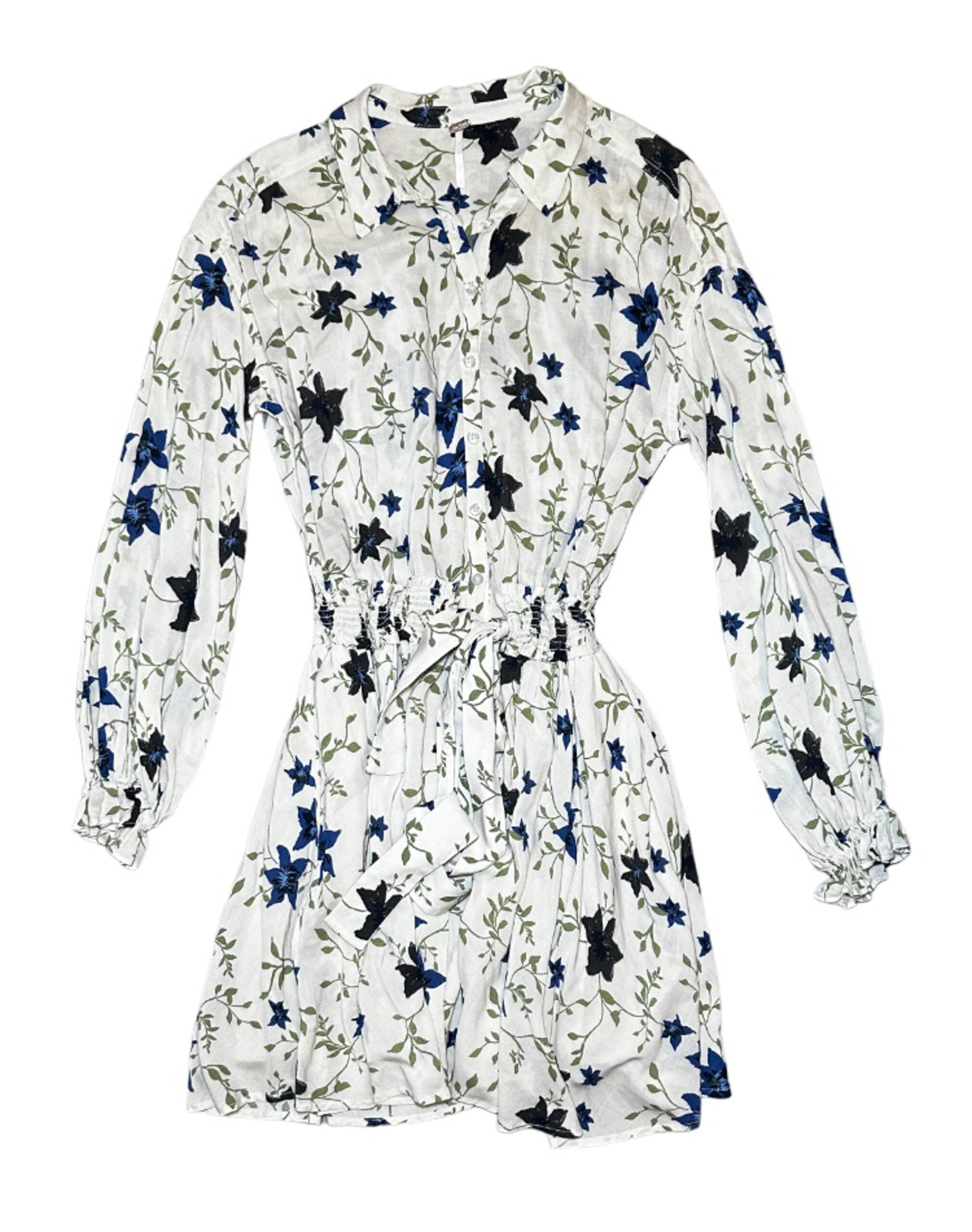 Free People Womens Lighten Up Floral Long Sleeve V-Neck Mini Dress XS