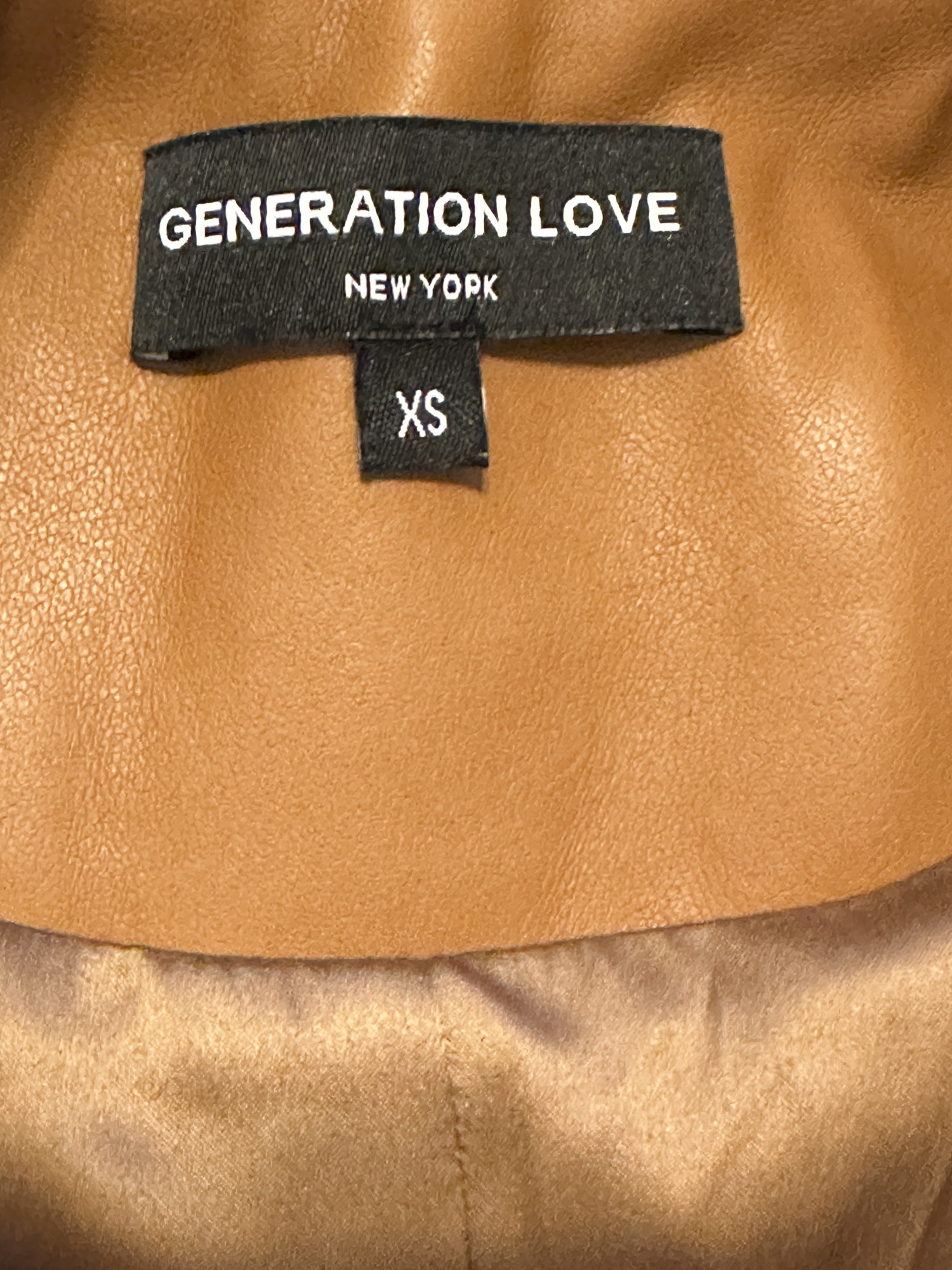 Generation Love NEW Diana Cognac Brown Vegan Leather Moto Jacket Size XS