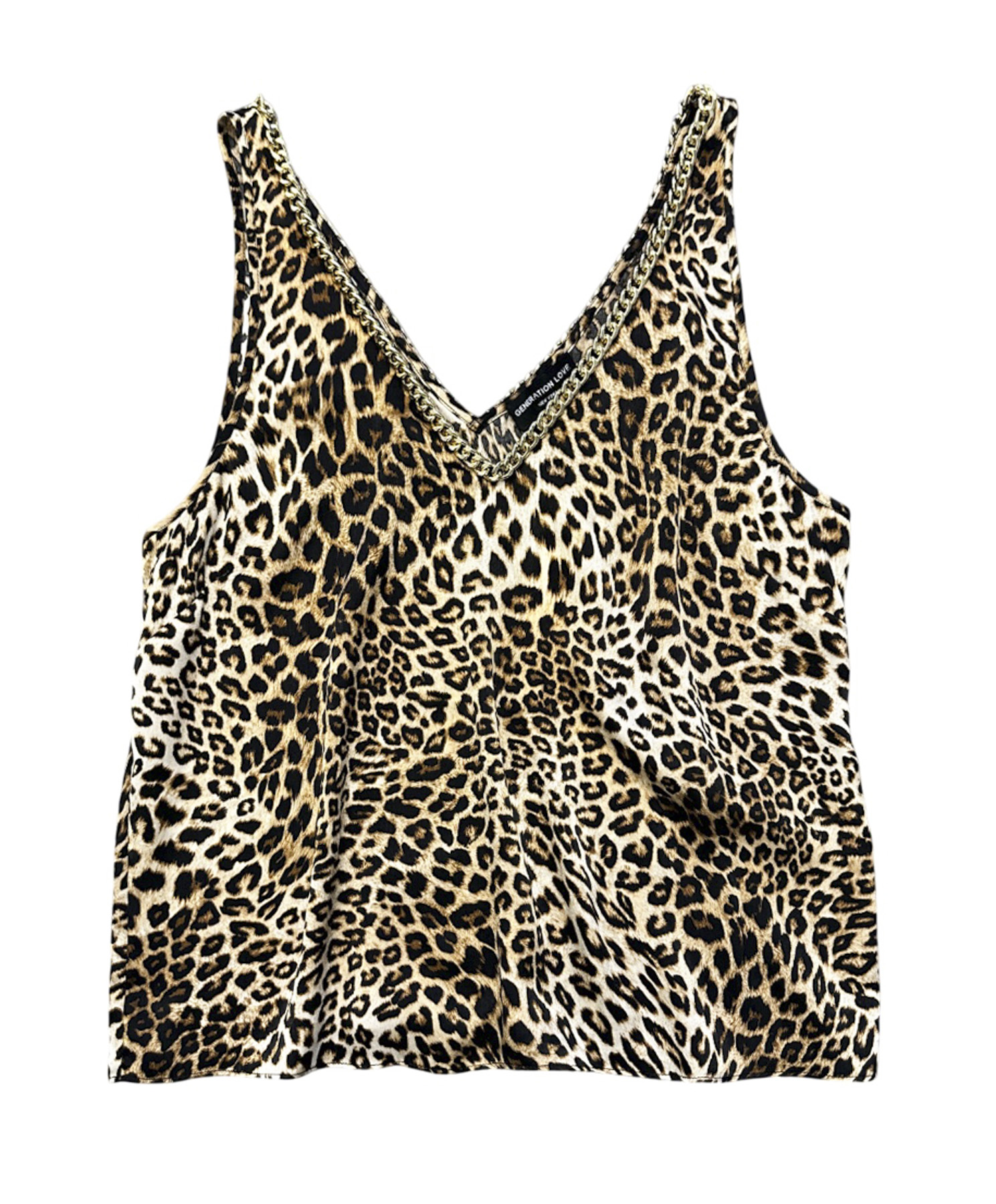 - Style: Mia Gold Chain Leopard Sleeveless Top Blouse