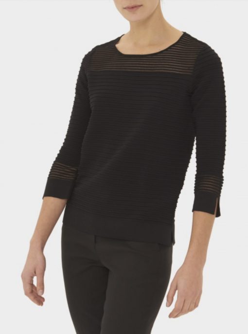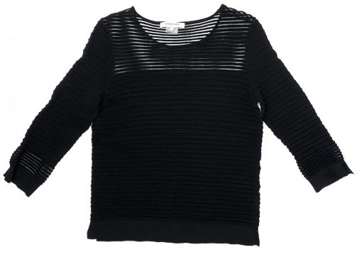 - Style: JOANITA BLACK RIB MESH PANEL PULLOVER TOP BLOUSE