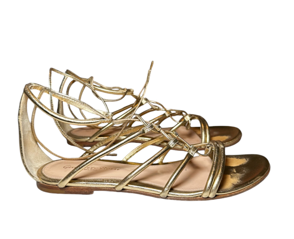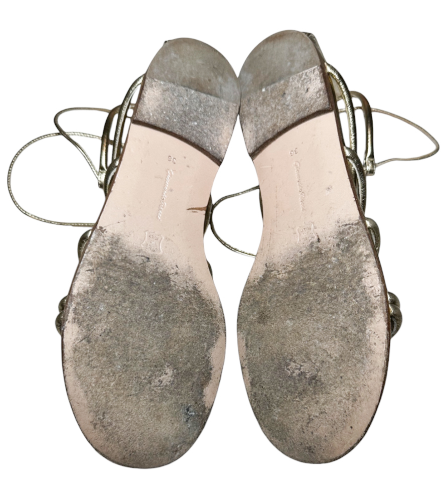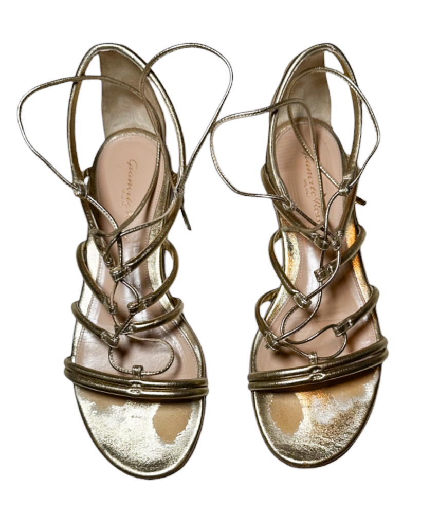- Style: Gold Leather Strappy Ankle Strap Gladiator Sandals