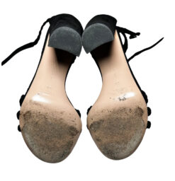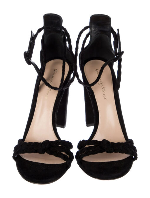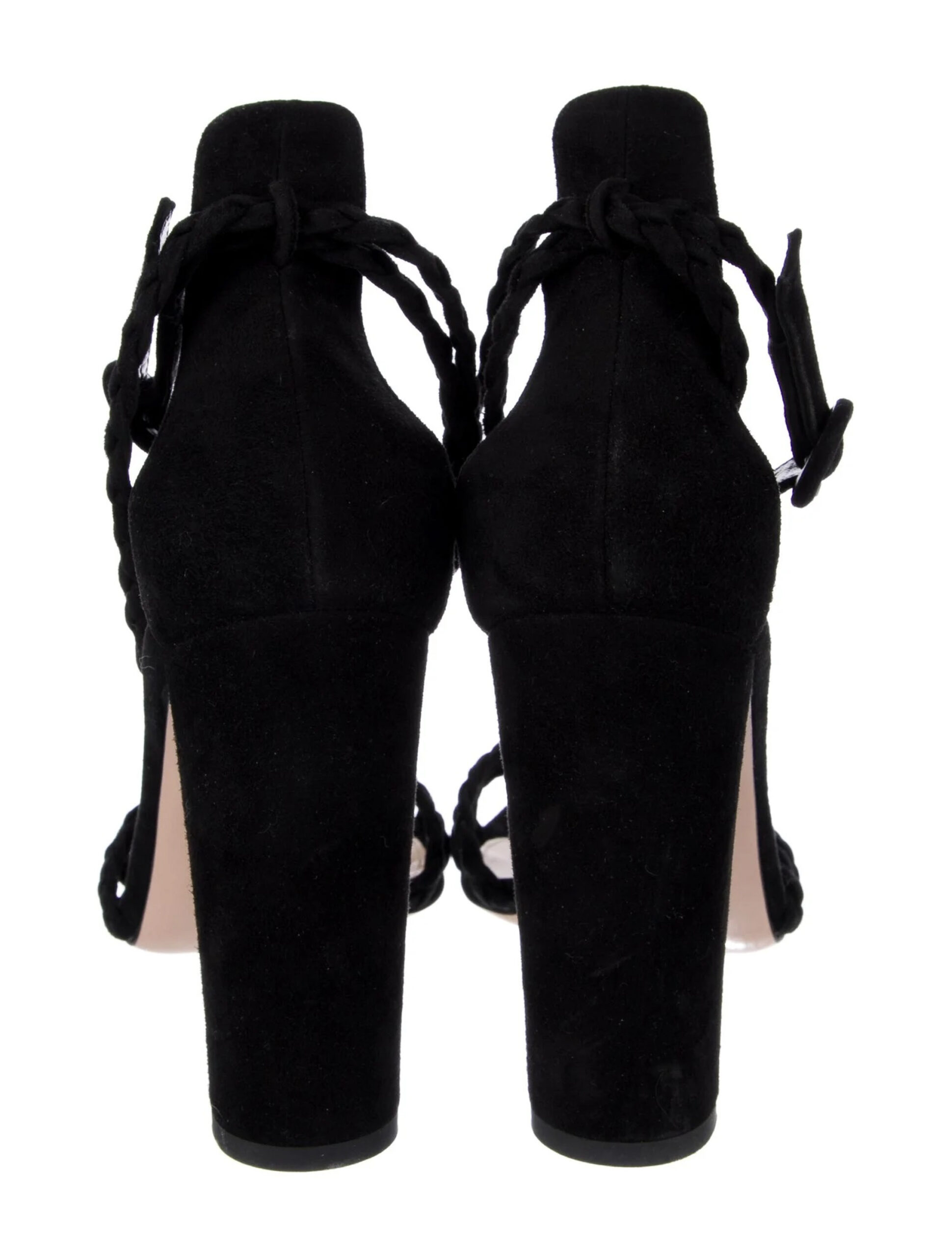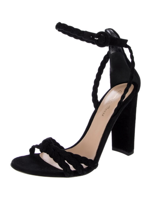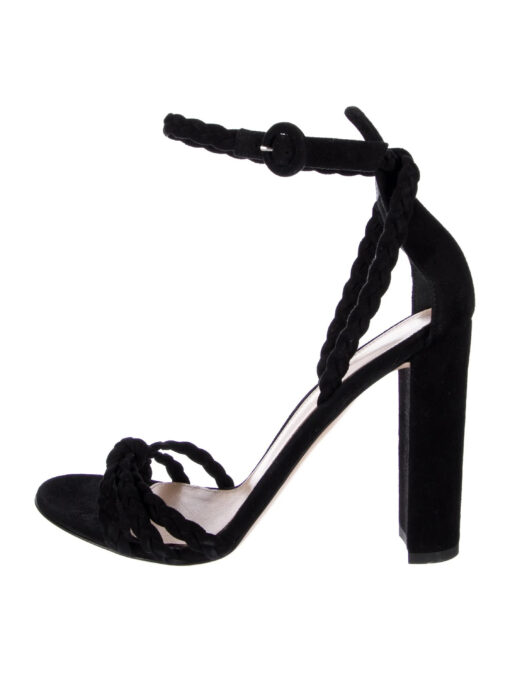 - Style: Liya Black Braided Suede Ankle Strap Heels Sandals