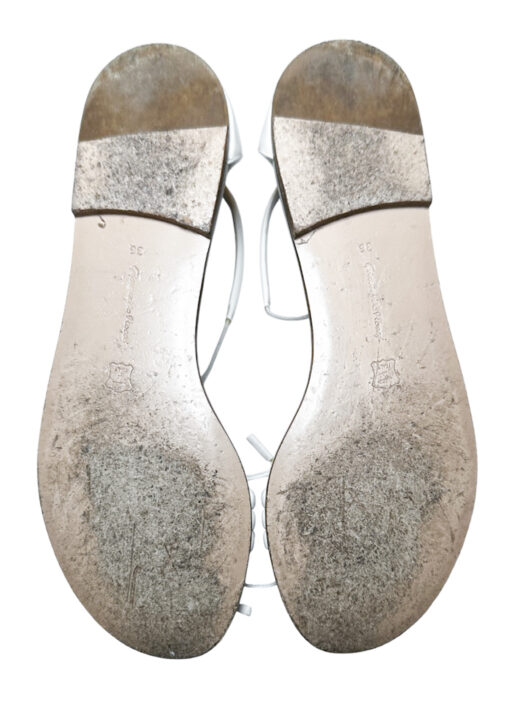 - Style: White Patent Ankle Strap Flat Sandals